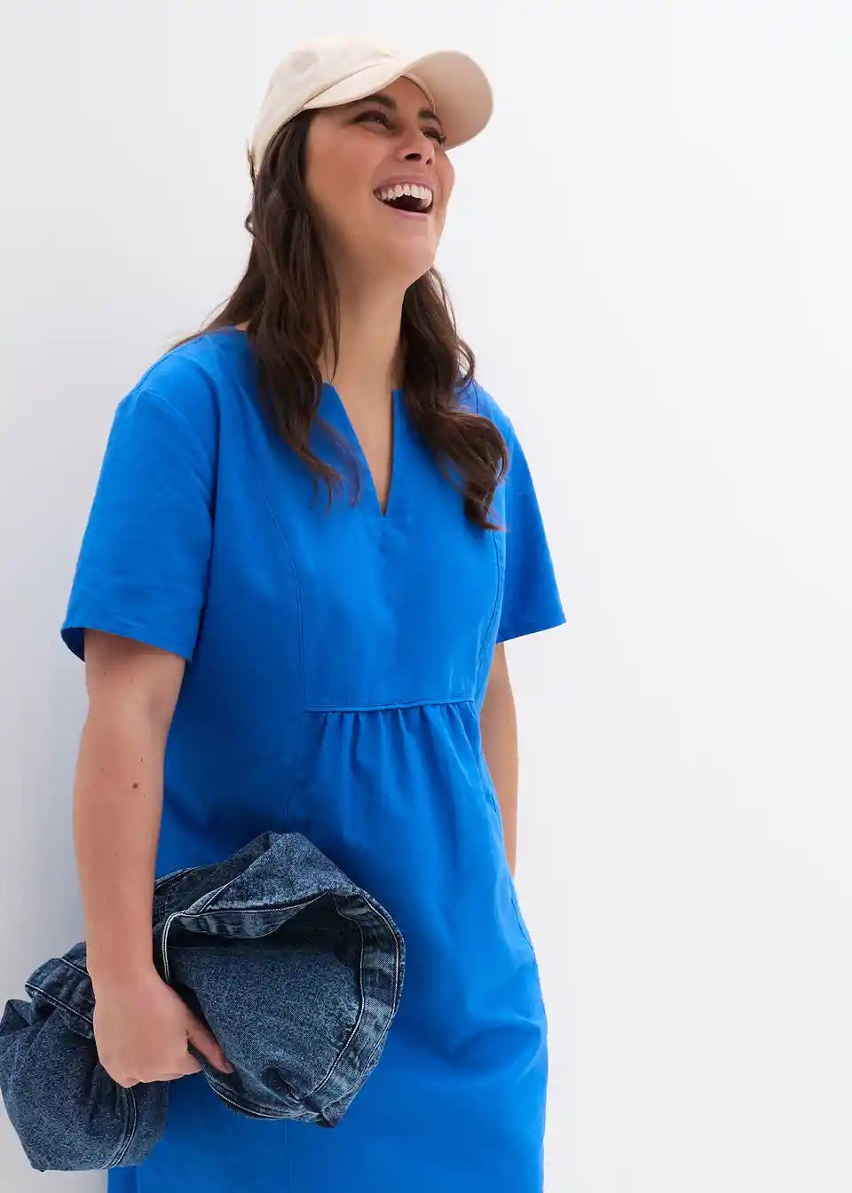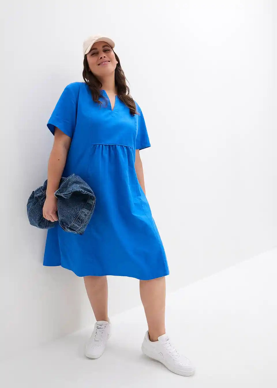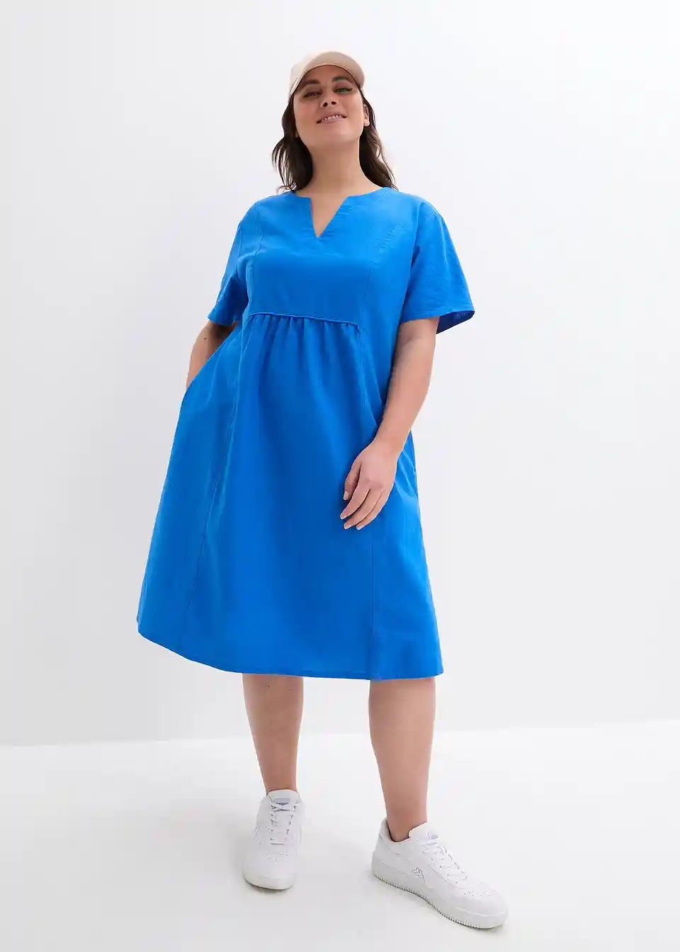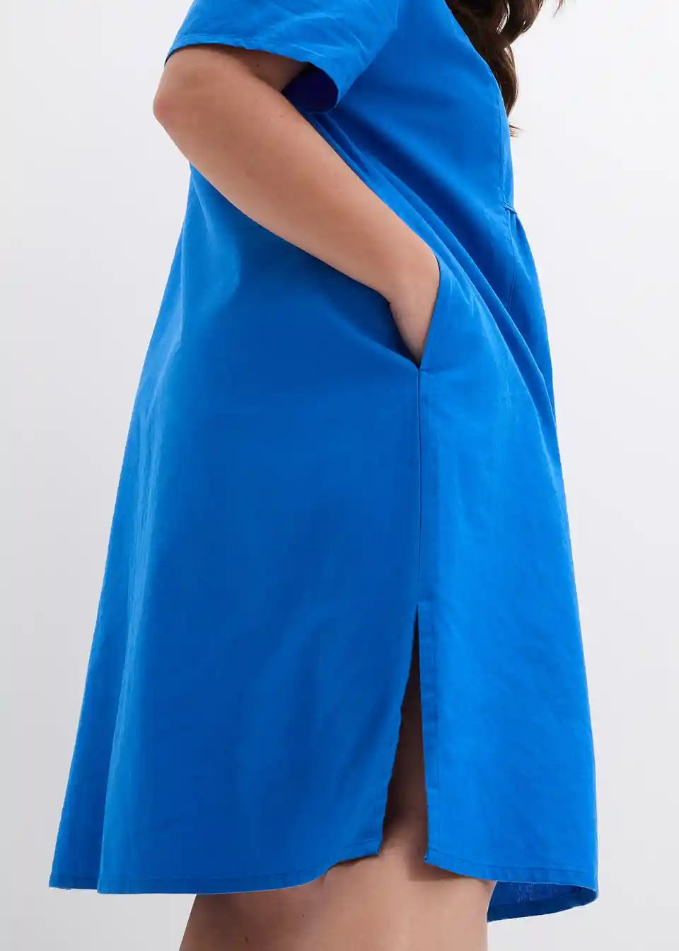 Obleka v kroju tunike z žepi iz mešanice bombaža in lana