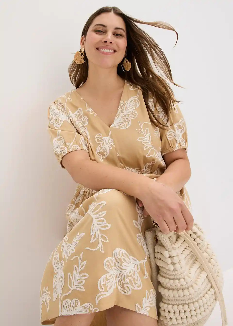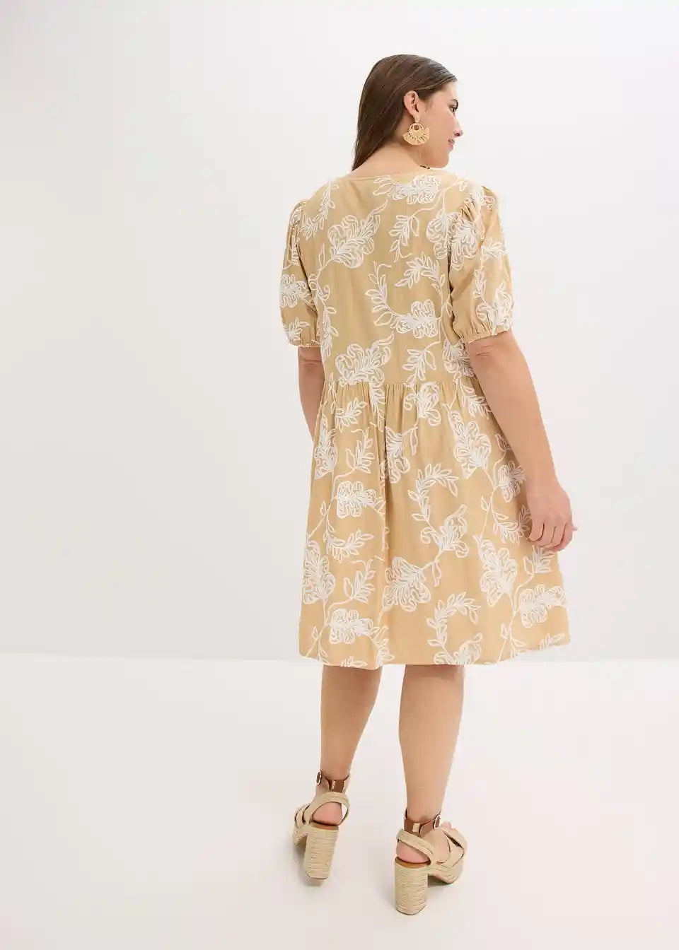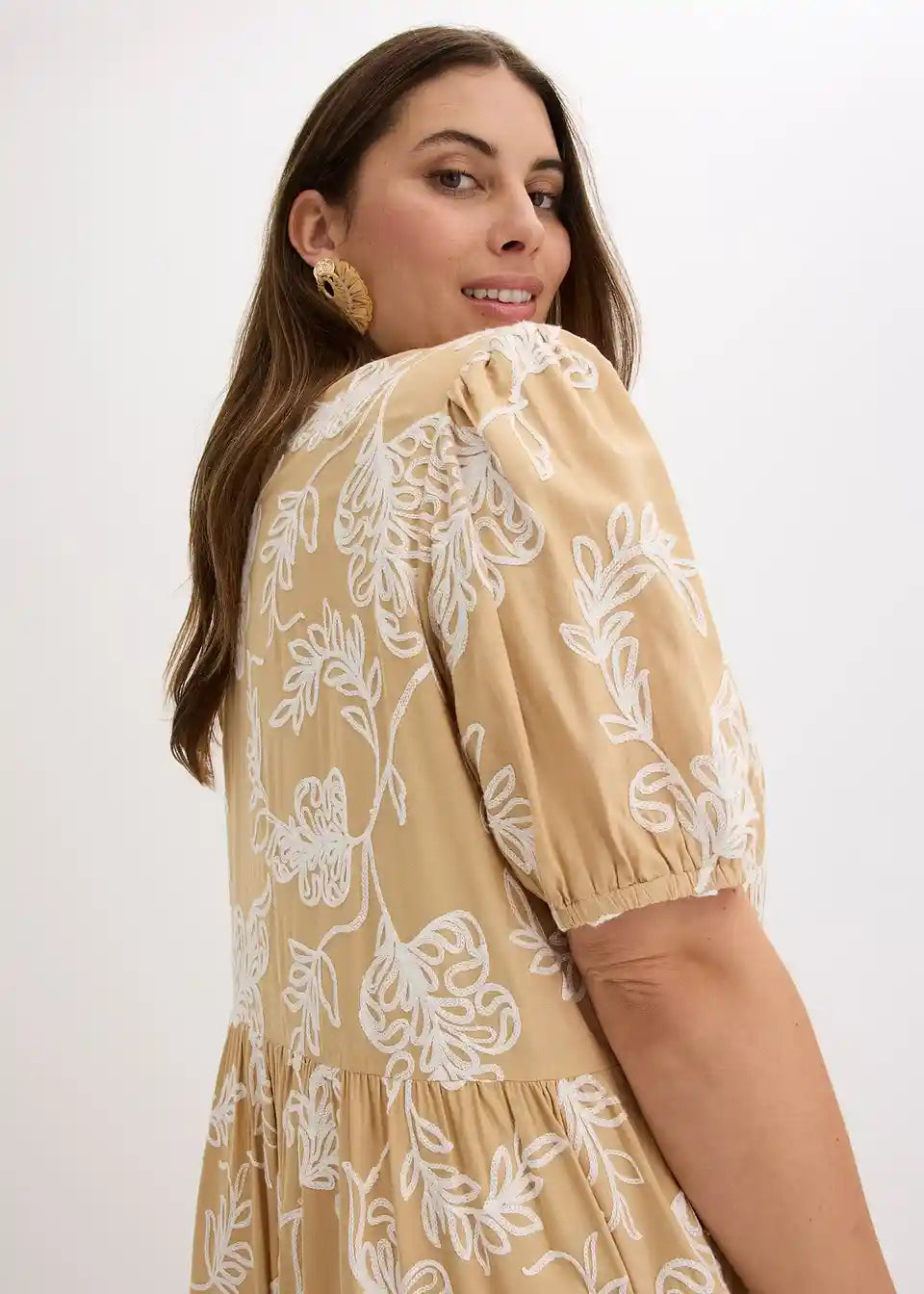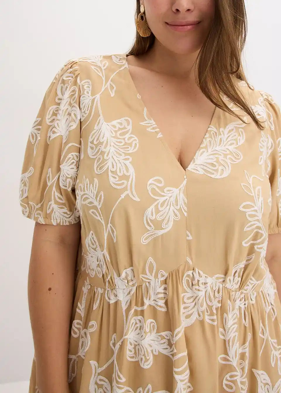 Obleka v kroju tunike z vezenino iz padajoče viskoze
