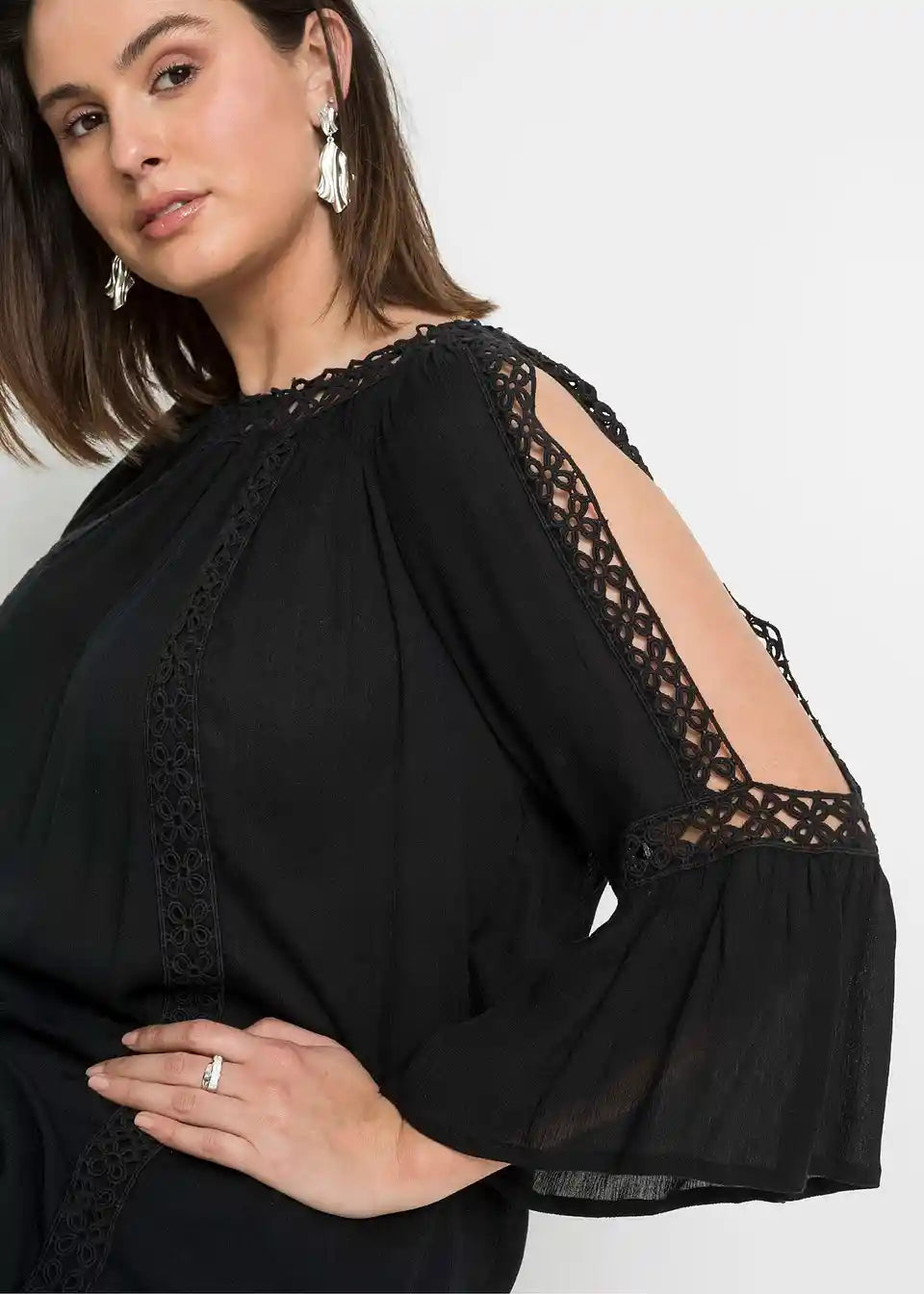 Tunika, ki lepo oblikuje postavo, s Cut-Outs in čipkastimi detajli.