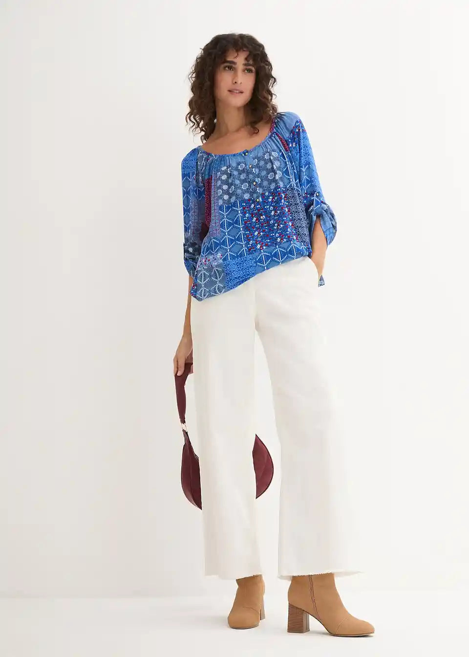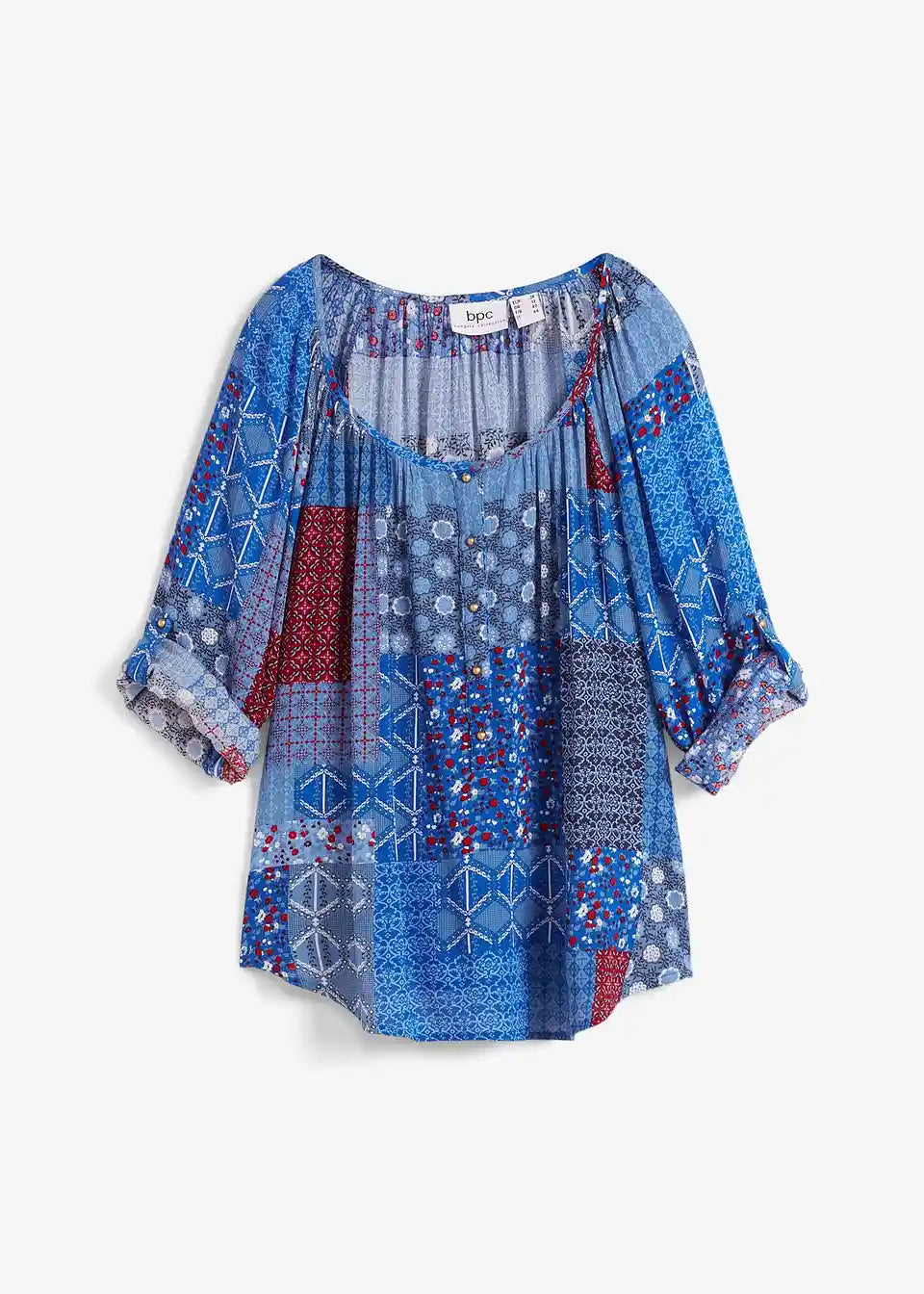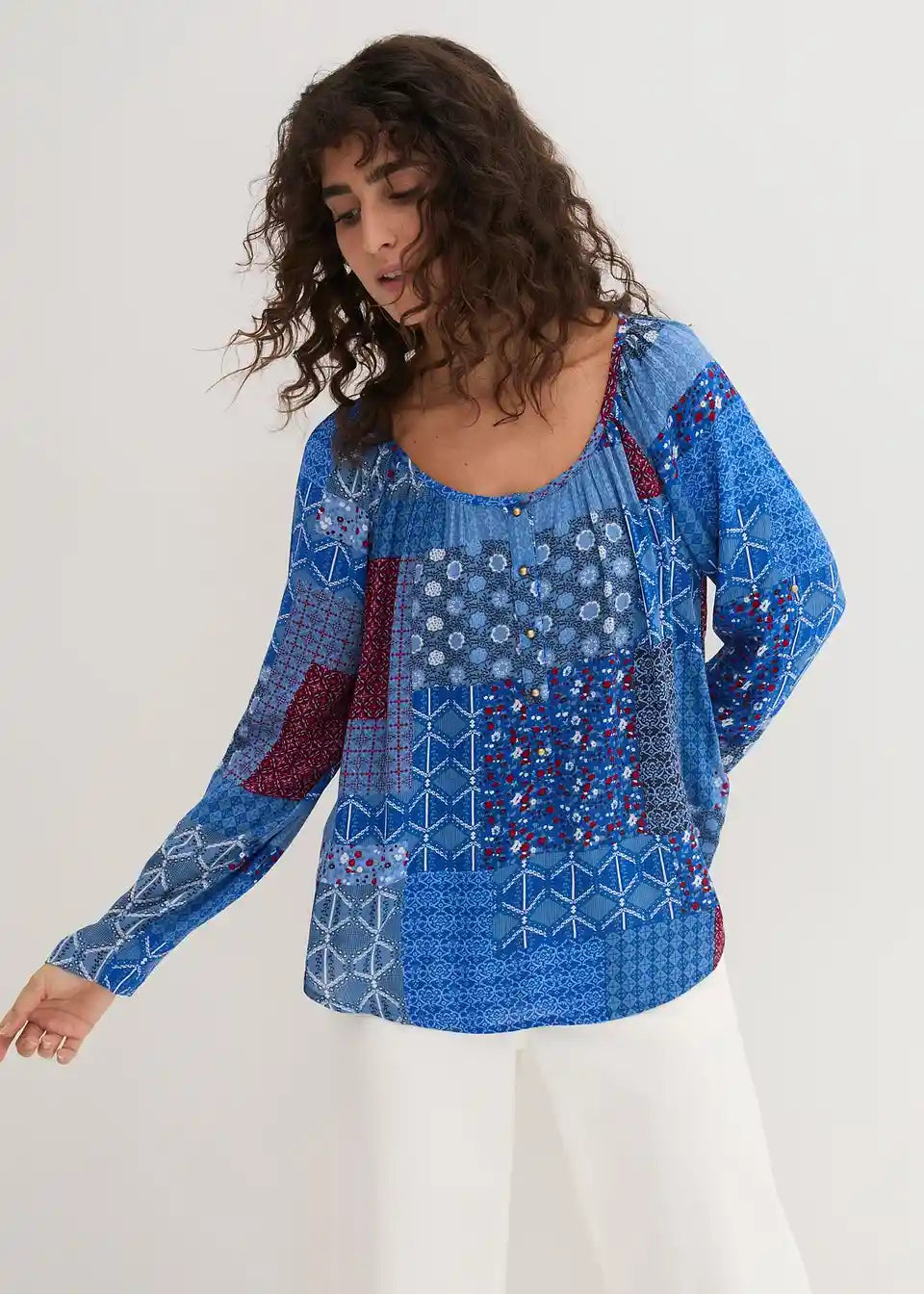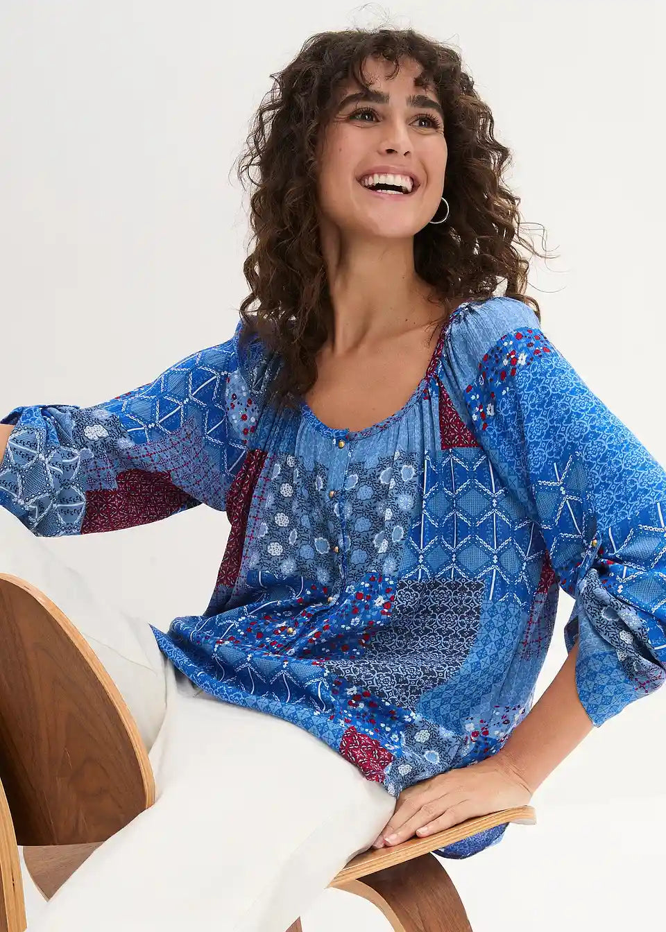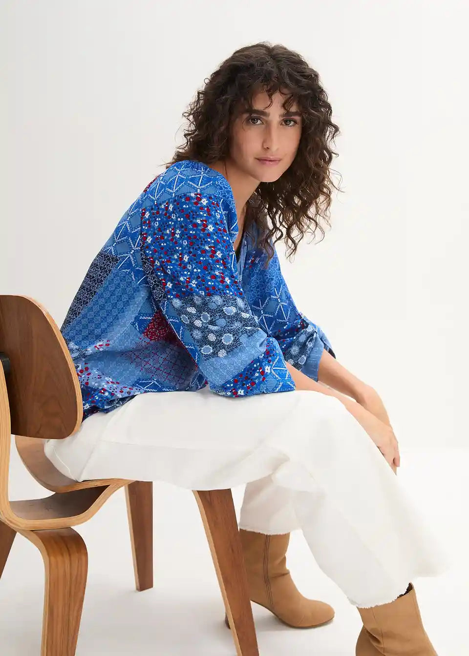 Rahlo padajoča tunizirana bluzka z dolgimi rokavi in Crincle učinkom. Zaradi posebnega postopka tiskanja je vsak kos unikaten