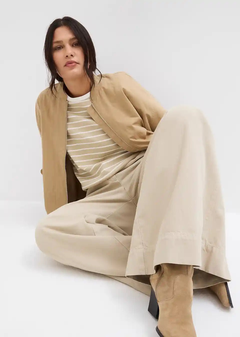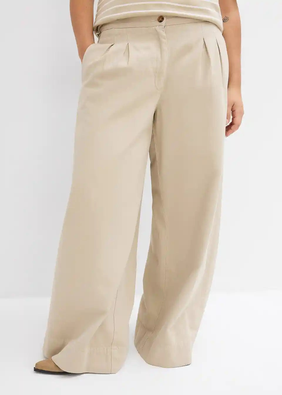 Ohlapne hlače iz twilla s širokimi hlačnicami in všitki