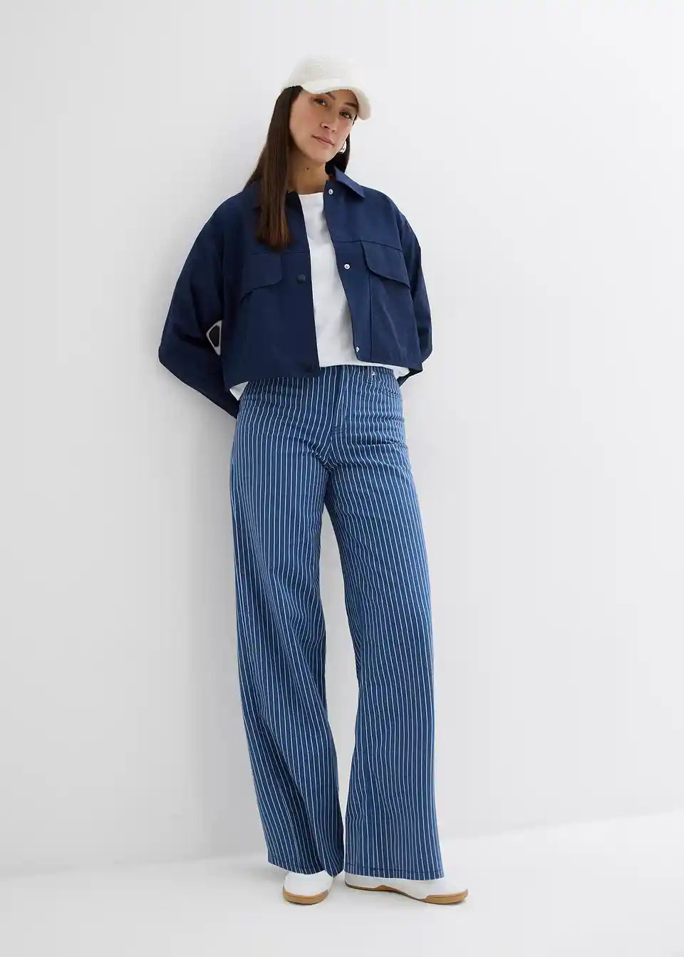 Modne, široko krojene Twill hlače iz čistega bombaža
