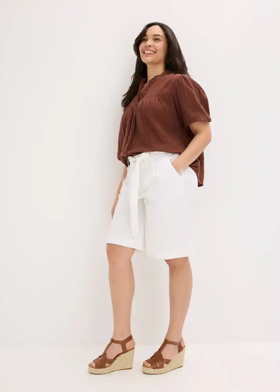 Kratke hlače z gubami v pasu in žepi