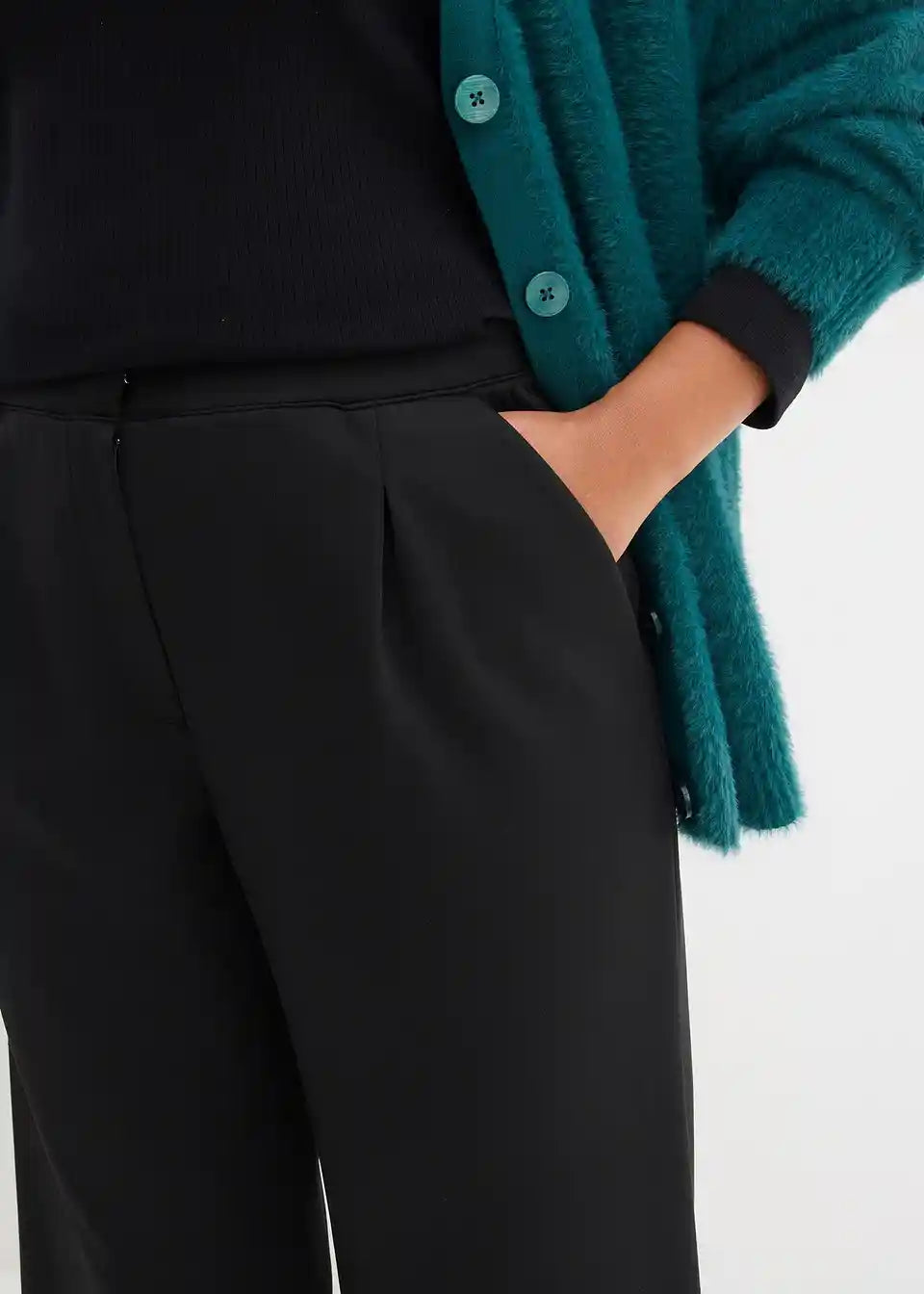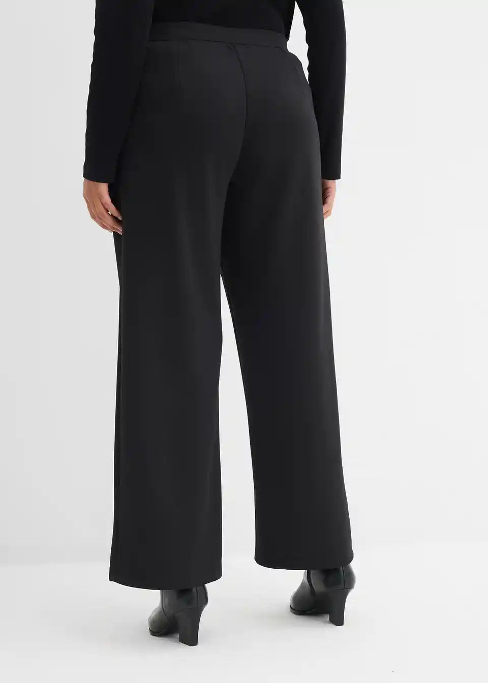 Hlače z visokim pasom, stranskimi žepi in širokimi hlačnicami