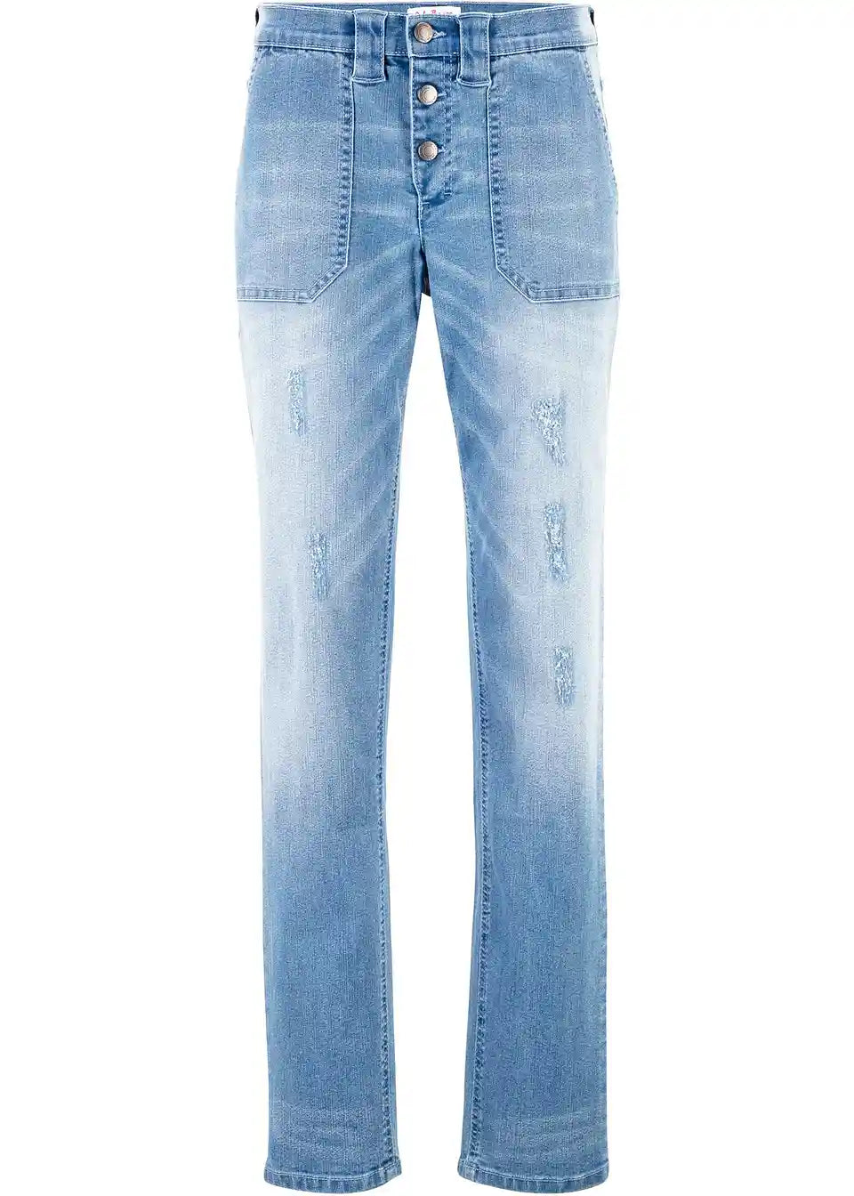 Trendi kavbojke v spranem videzu z uničenimi detajli