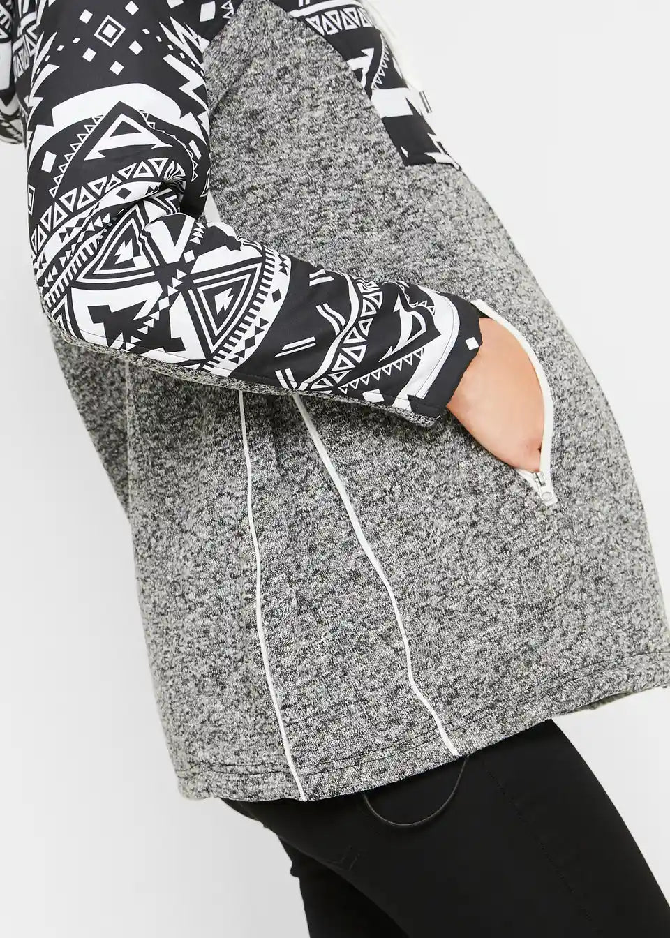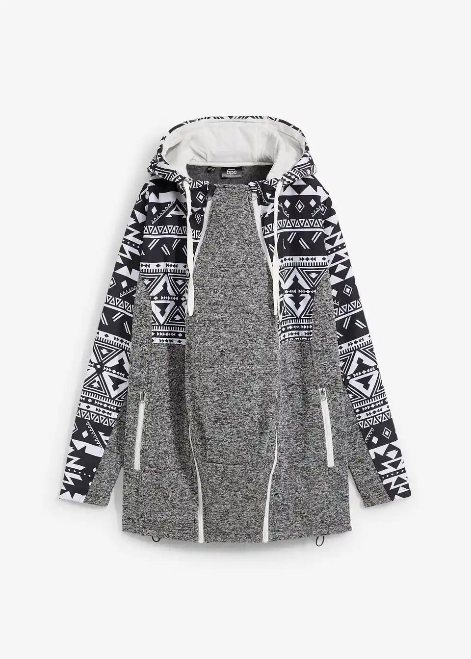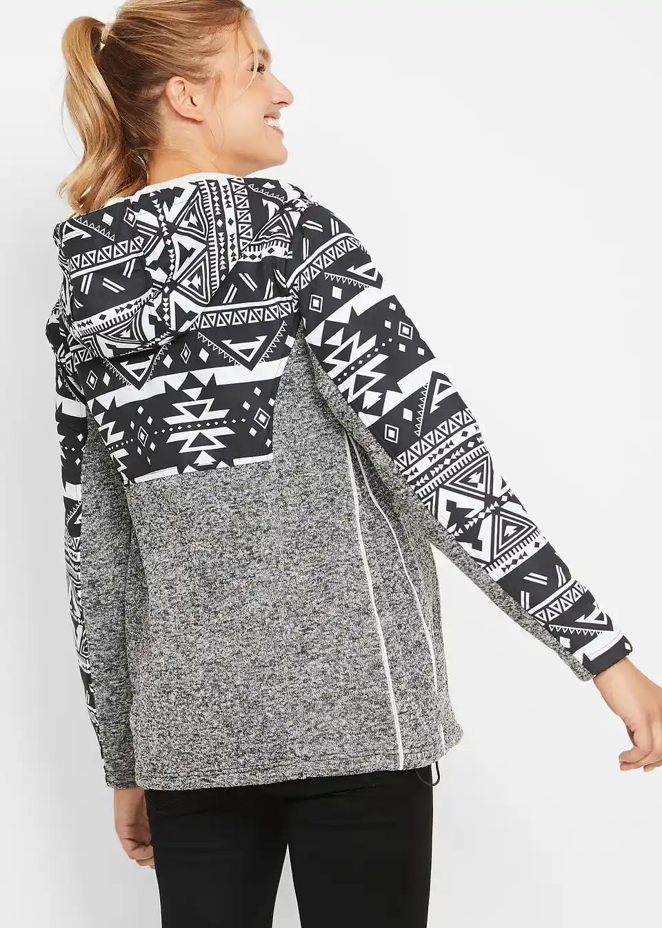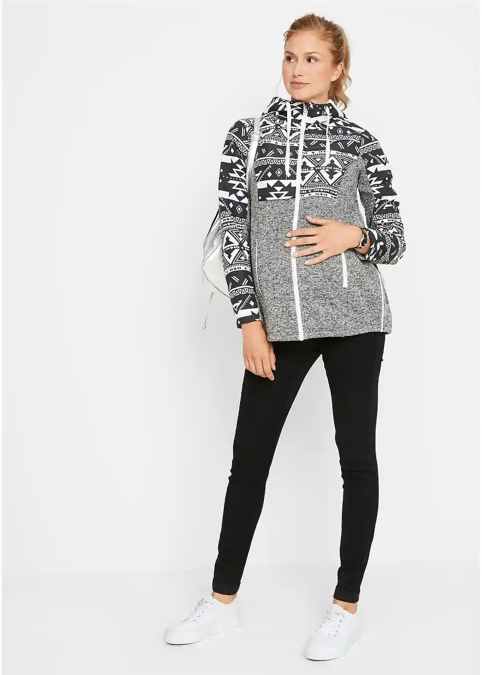 Flis jakna za nosečnost z grafičnim tiskom in vložkom za dojenčka. Vložek za dojenčke služi le za zaščito otroka pred vetrom in vremenom, ne kot funkcija nošenja!