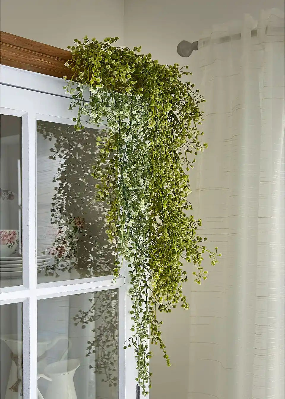 Umetna cvetlična vinska trta navdušuje z gostim listjem in majhnimi svetlimi cvetovi. Je presenetljivo realistično izdelana in očara s svojo podrobnimi detajli. Posamezne trte umetne rastline so združene v vstavno palico, ki se lahko vstavi v cvetlične lončke ali korita. Zlasti v manjših prostorih z malo svetlobe se rastlina izkaže kot dekorativna obogatitev. Poleg tega umetna cvetlična vinska trta z majhnimi cvetovi ponuja tudi enostavno vzdrževanje.