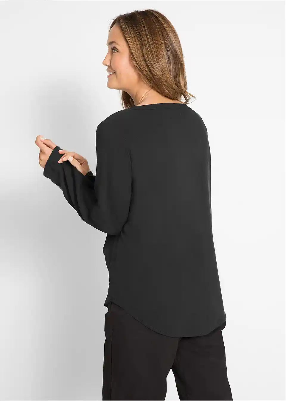 Bluza iz viskoze z V-izrezom in dolgimi rokavi