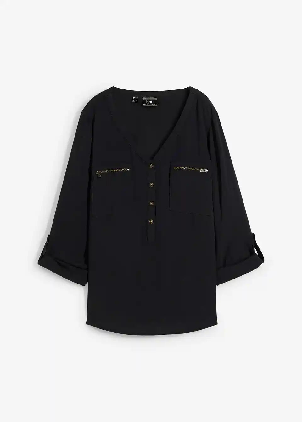 Elegantno in ležerno se predstavlja ta dolga rokavna viskoza bluza znamke bpc. Čudovite podrobnosti in sproščen kroj jo naredita za pravi favorit v garderobi. Z zadrgami okrašeni prsni žepi in vrstica z gumbi dajejo bluzi ležerni šik. Rokave je mogoče preprosto zavihati in pritrditi s paščkom. V kombinaciji z visokimi čevlji in kavbojkami - popolna izbira za prosti čas.