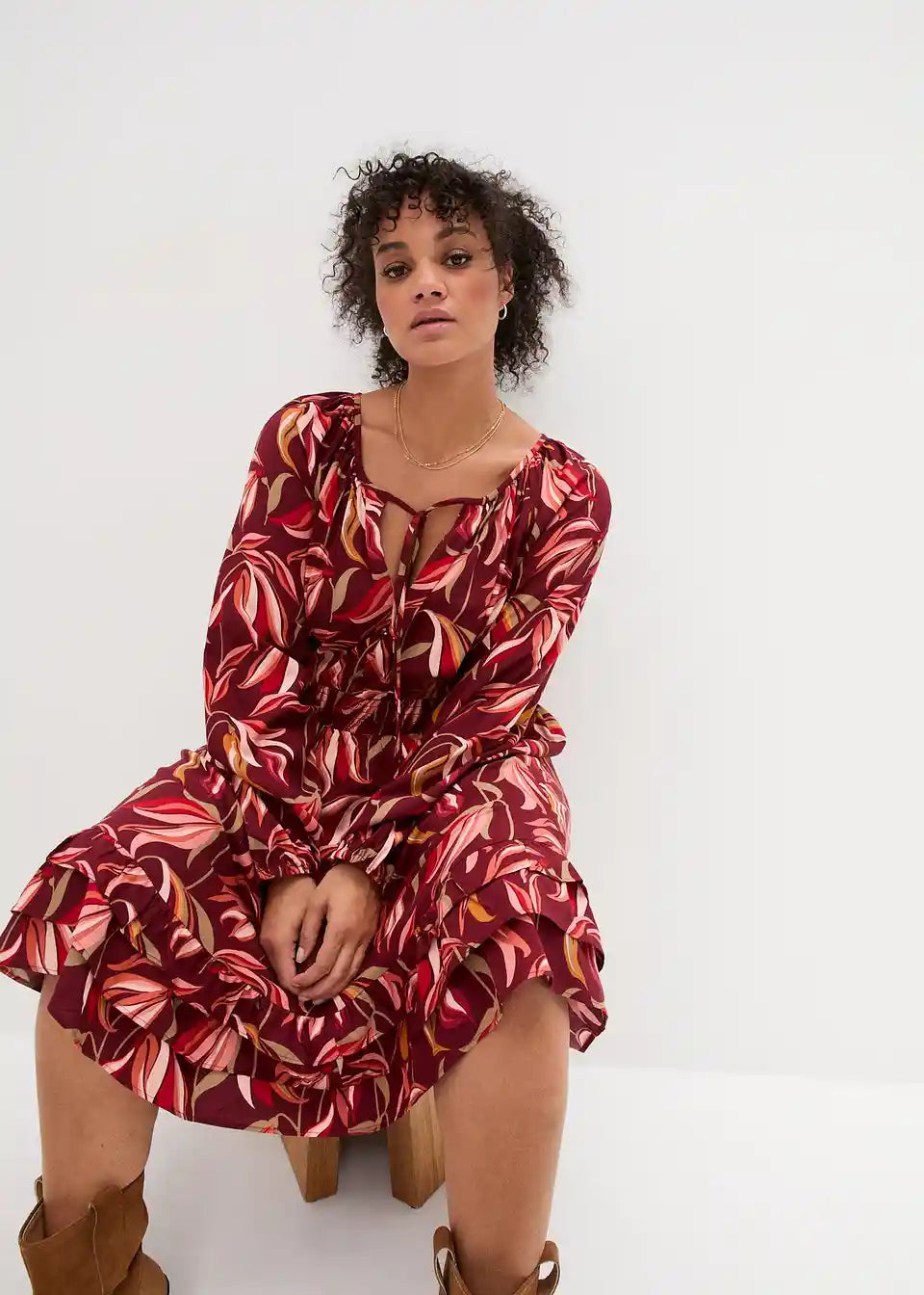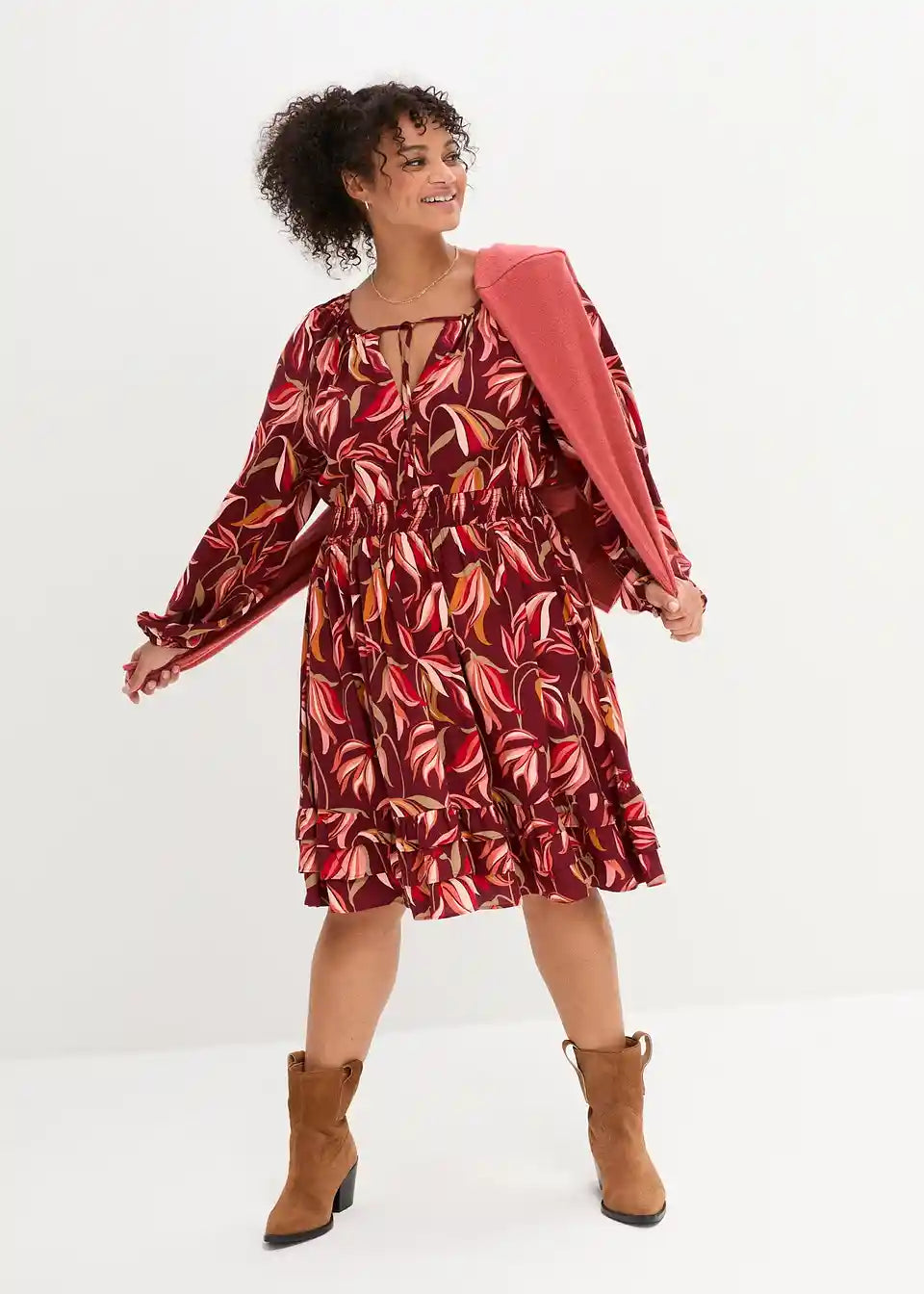 Igriva viskozna obleka poudarja pas in omogoča prikrivne učinke