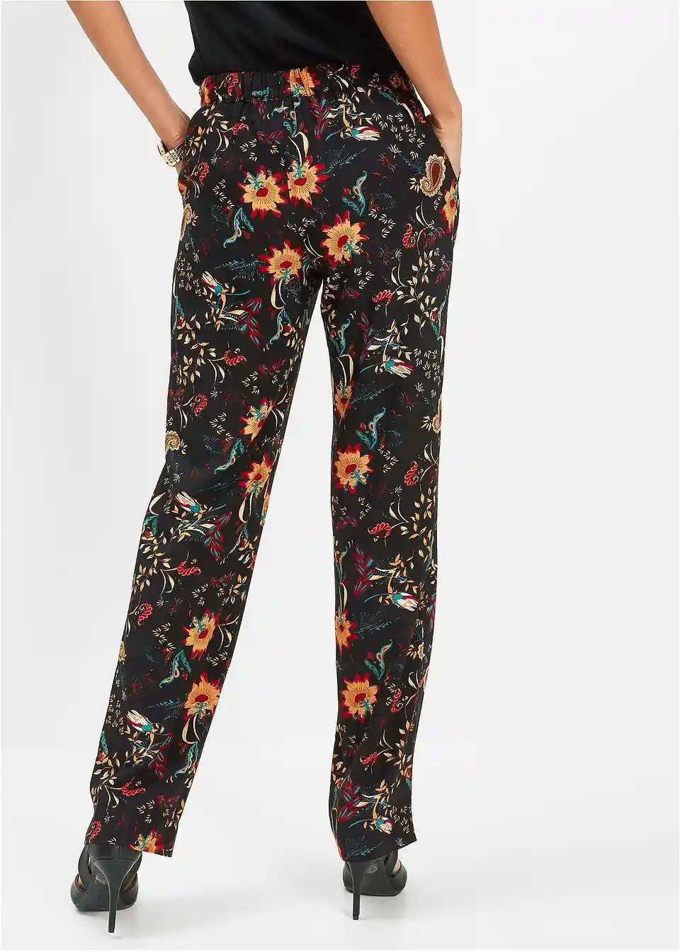 udobne hlače na elastiko z cvetličnim potiskom