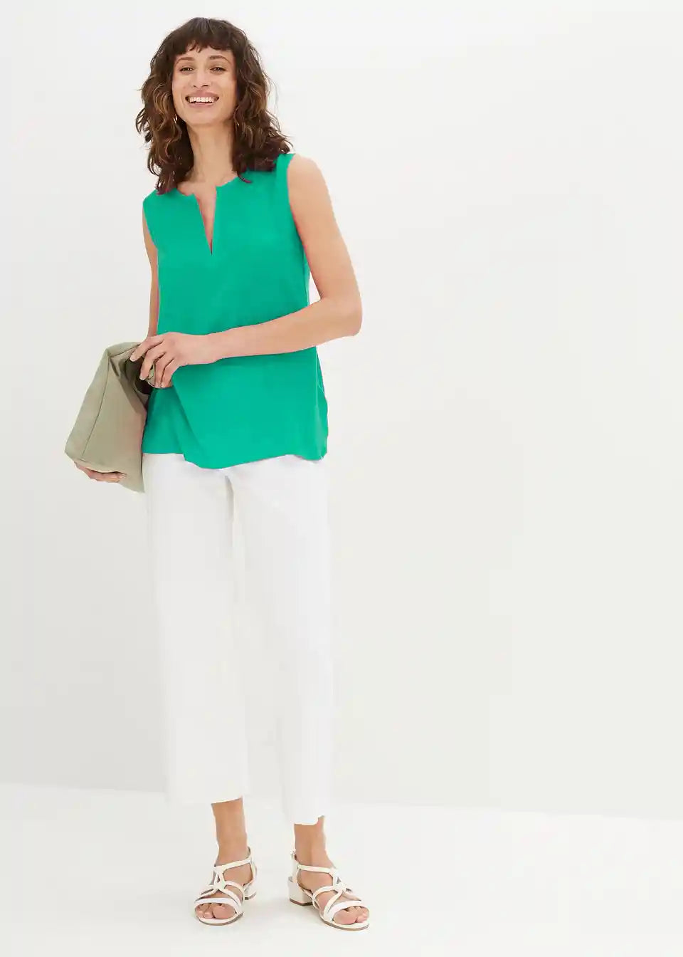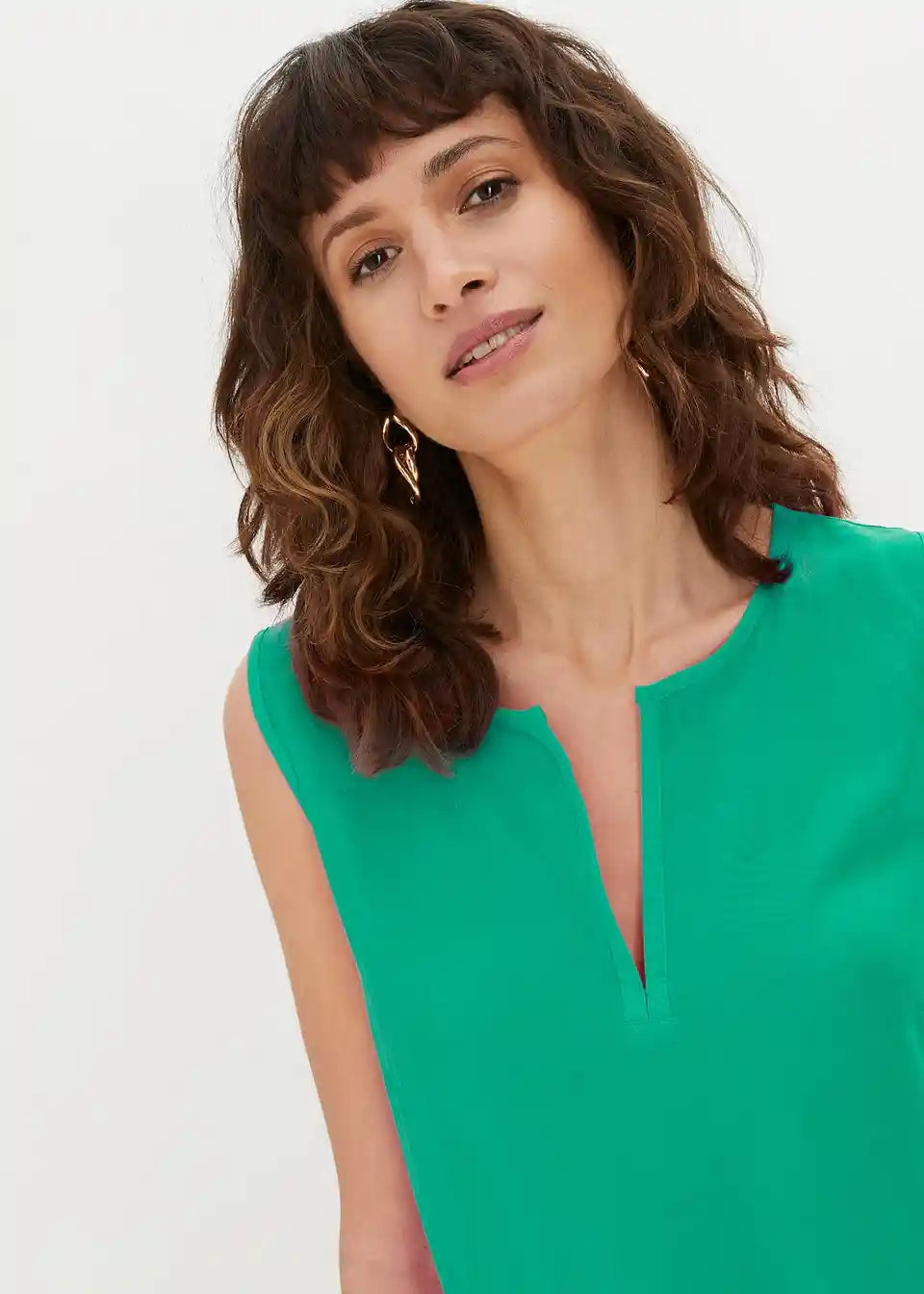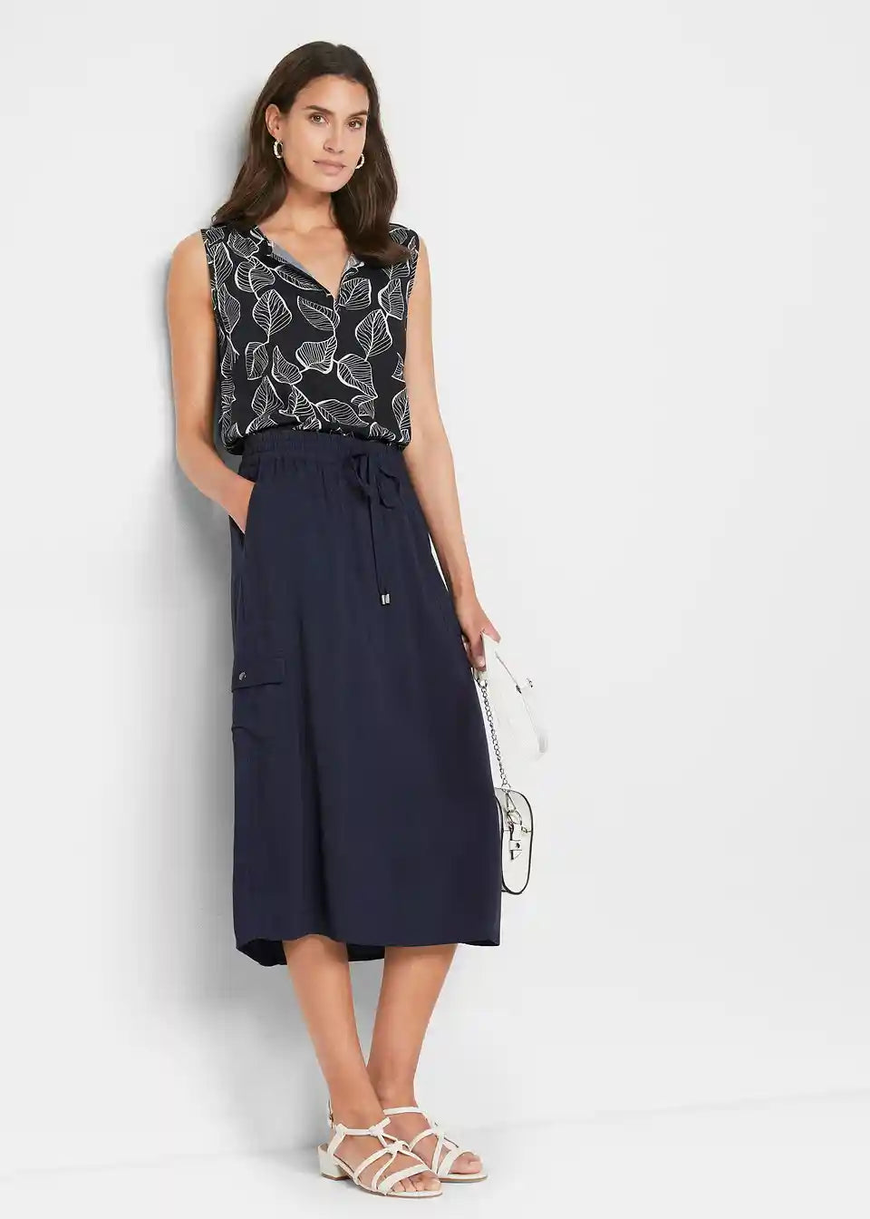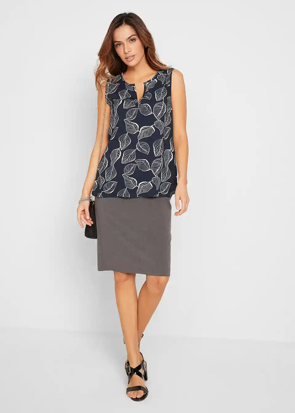 Lahka kvaliteta, kroj poudarja postavo, zaobljen zaključek spodnjega roba s stranskimi razporki, dolžina približno 63 cm (vel.36) do približno 72 cm (vel.54), primerno za pranje v pralnem stroju,