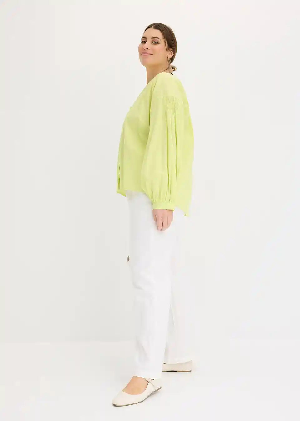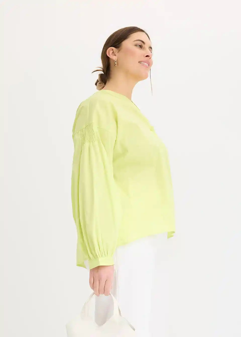 A-oblika bluza s smok detajli na ramenu in širokimi rokavi