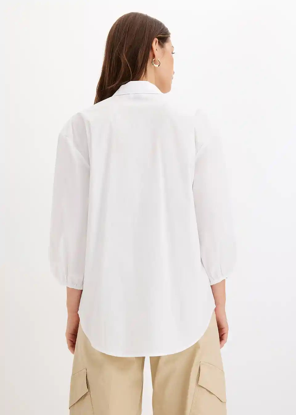 Zadaj daljša bluza z balonastimi rokavi