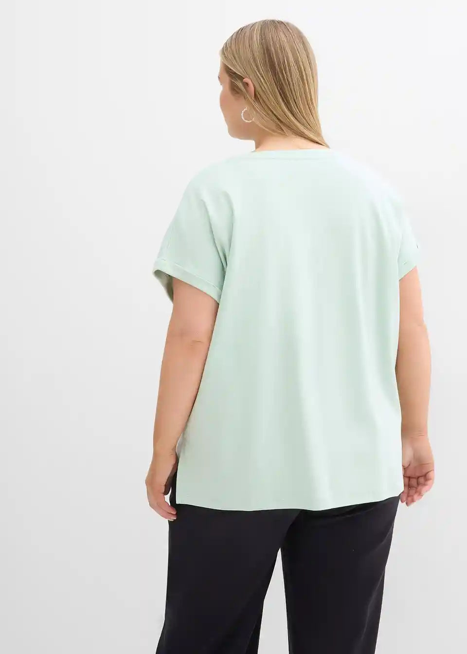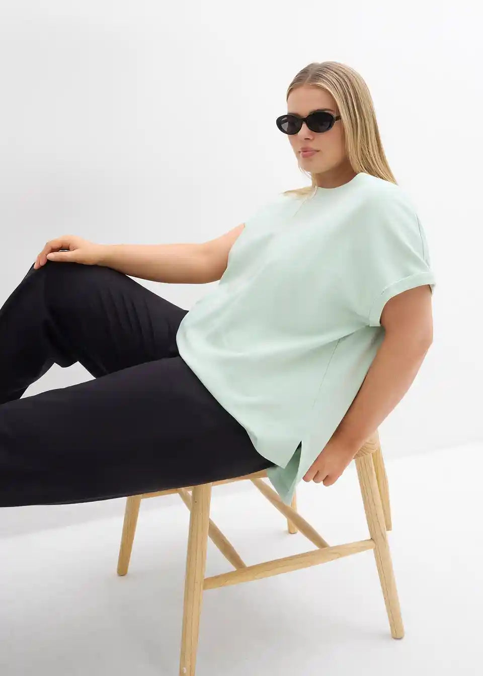 Vokuhila majica s stranskimi razporki in domiselno zavihanimi kimono rokavi
