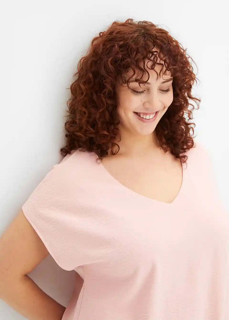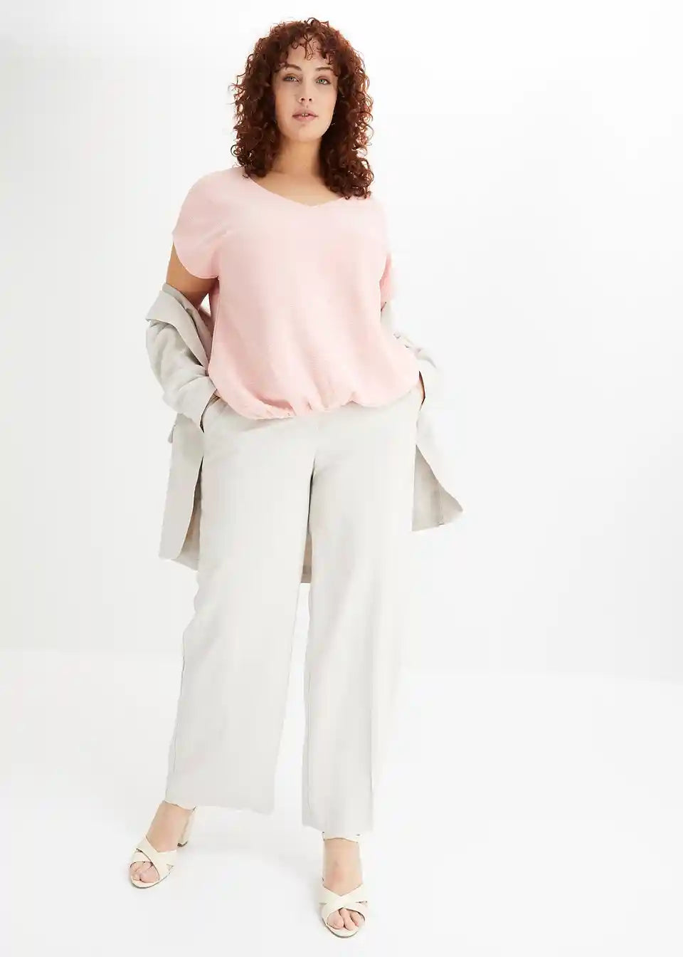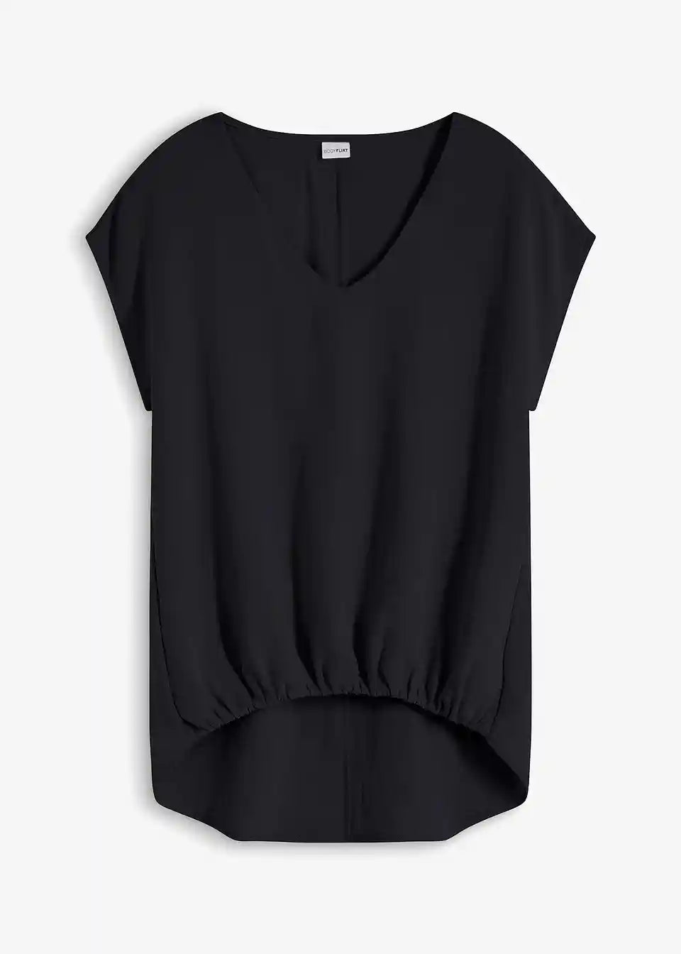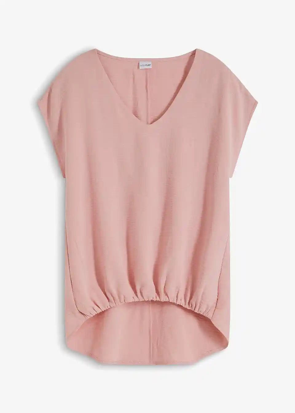 Eleganten top z nabiranjem spredaj na robu, zadaj nekoliko daljši
