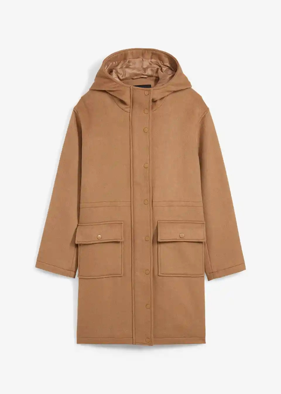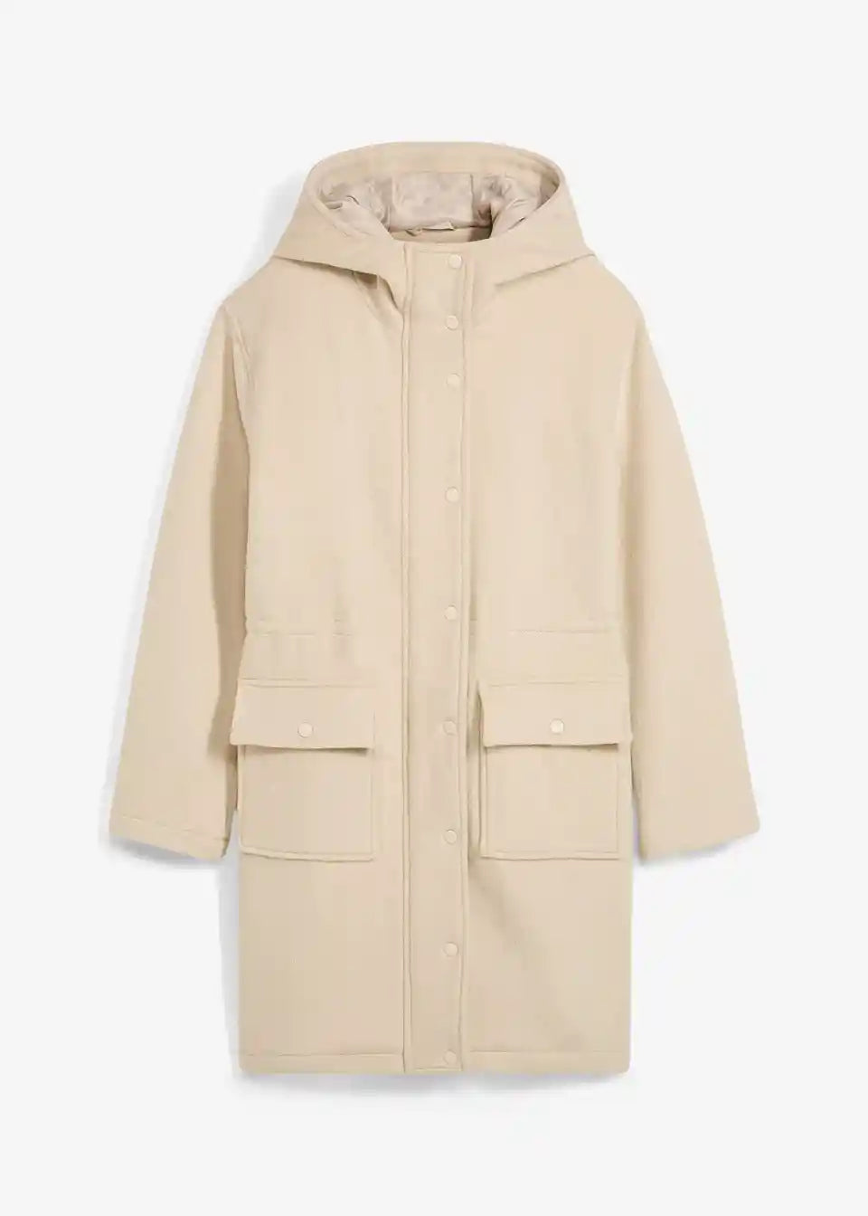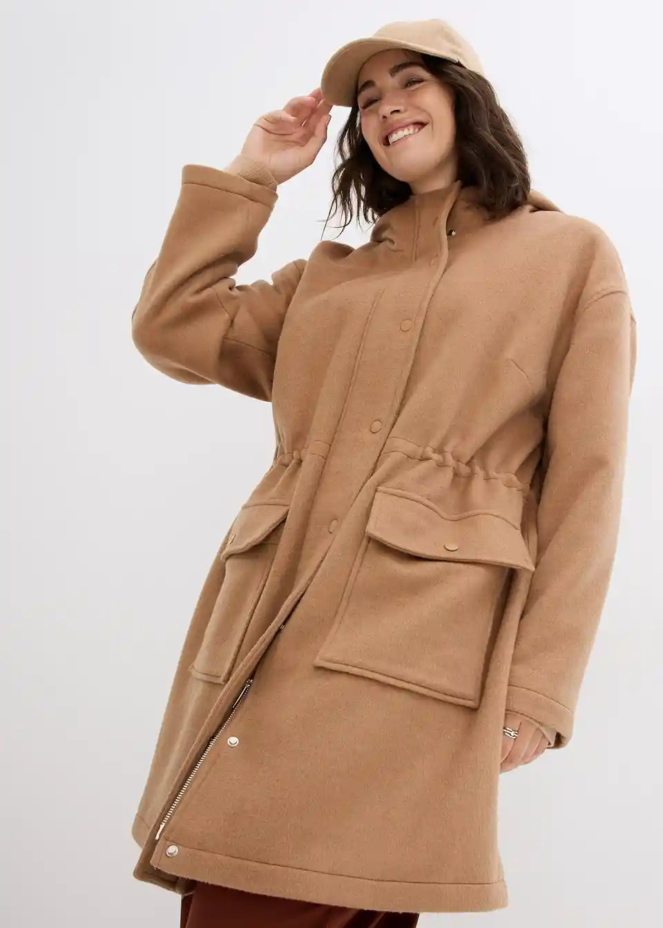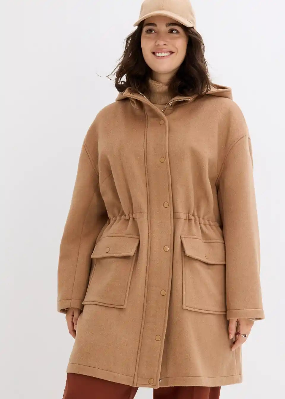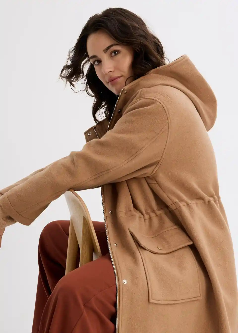 udoben parka iz visokokakovostne mešanice volne, z notranjo vrvico