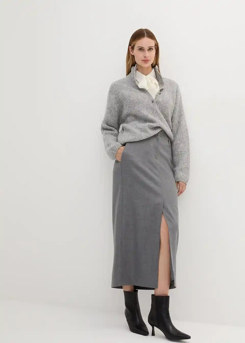 Maksi krilo iz visokokakovostne volnene mešanice, z razporkom in udobnim pasom na hrbtni strani