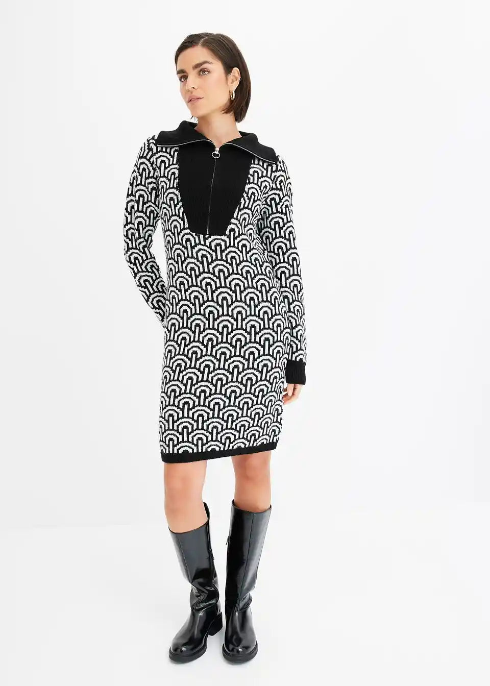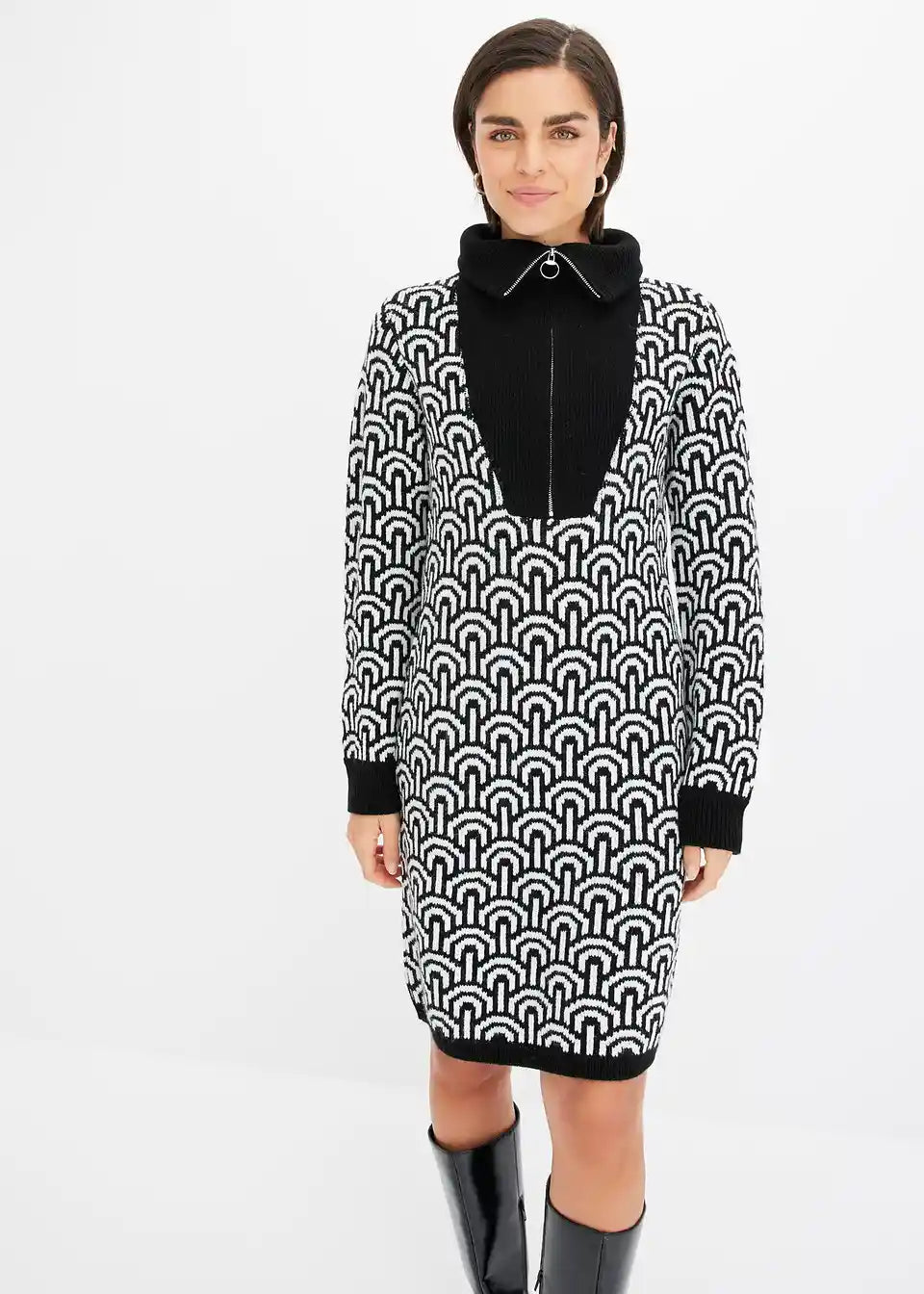 Pletena obleka s Troyer ovratnikom in jacquard vzorcem