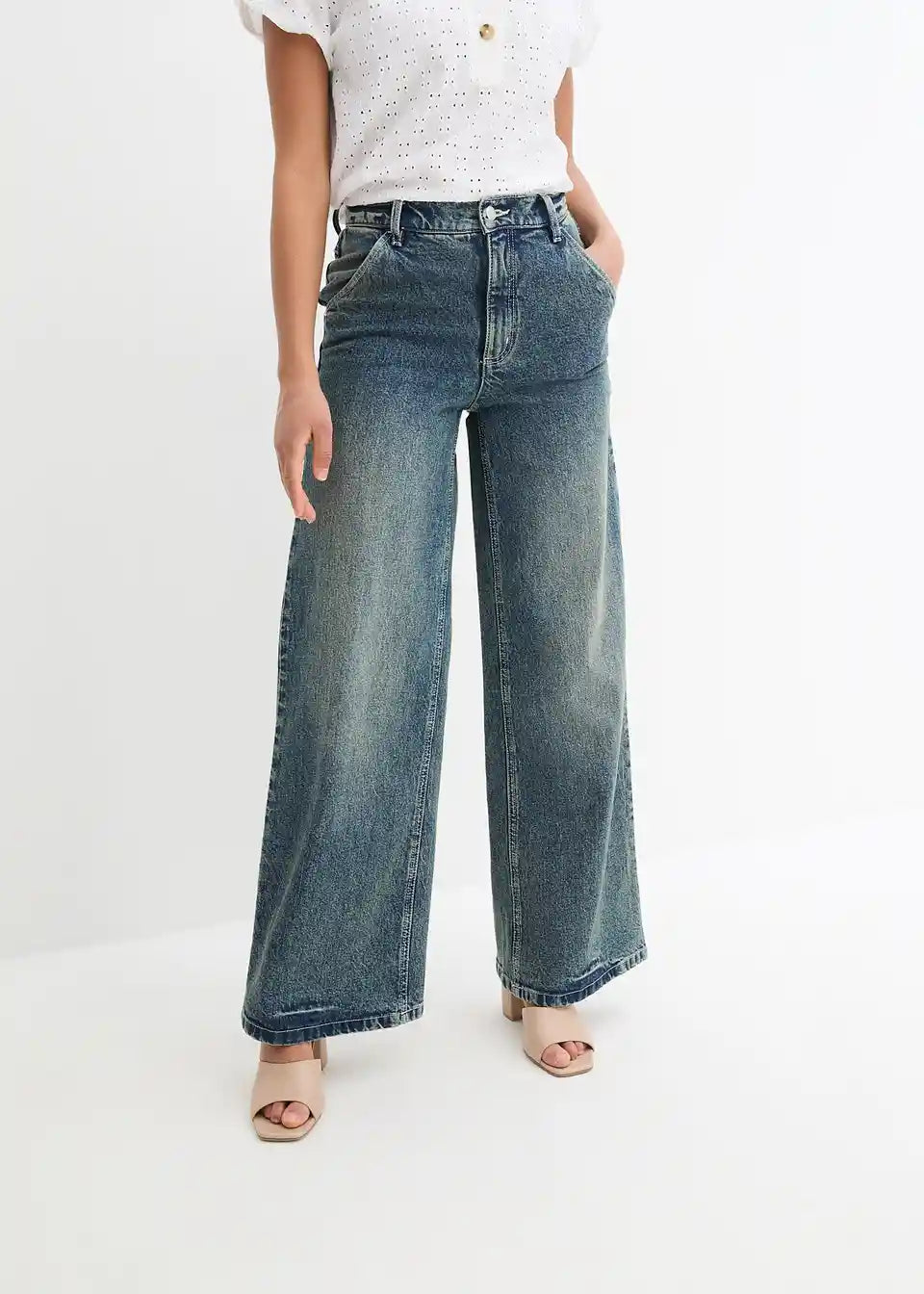 Kavbojke s širokimi hlačnicami in visokim pasom