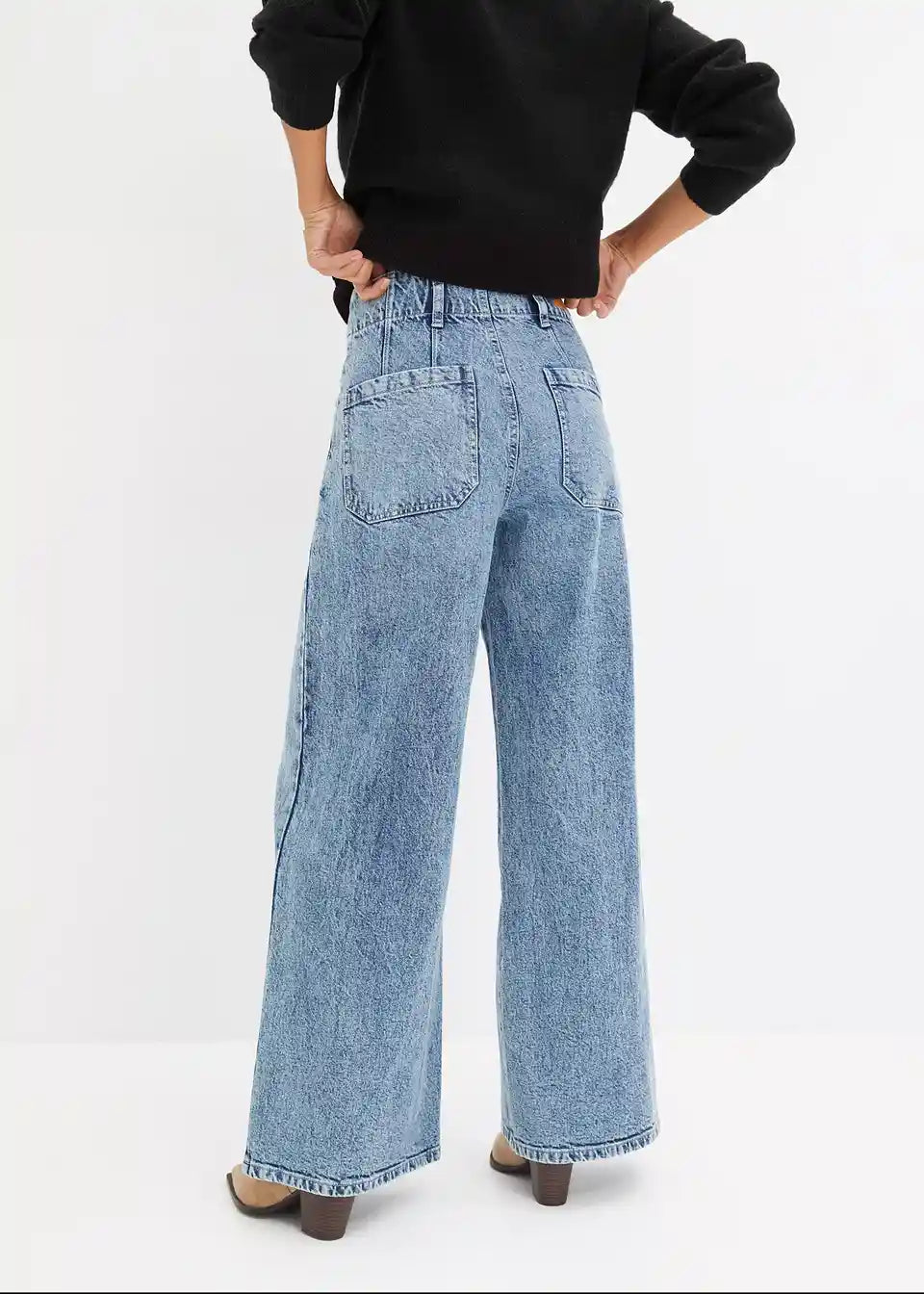Kavbojke s širokimi hlačnicami in visokim pasom