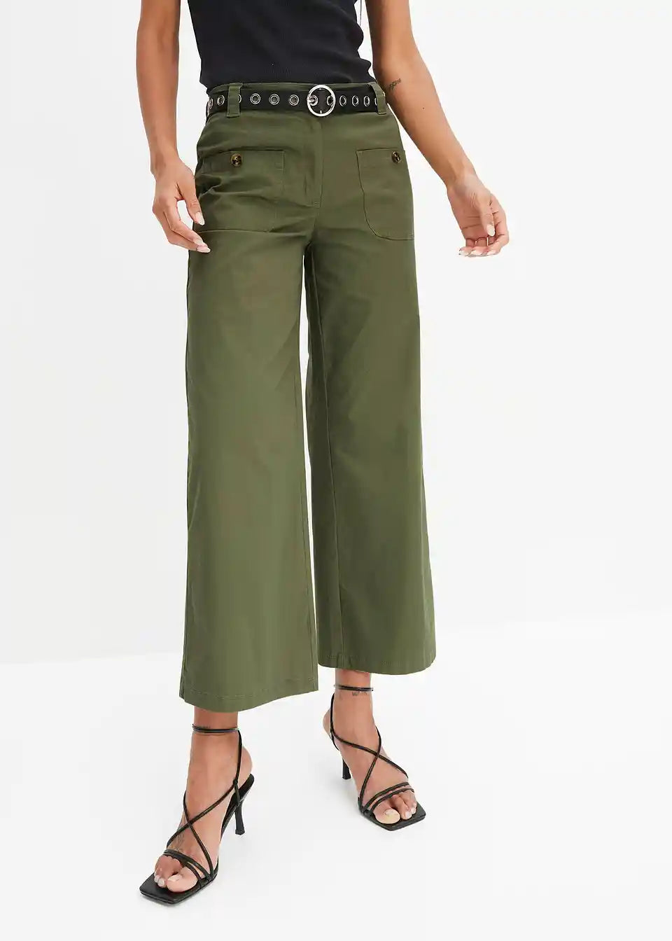 Ležerne culotte hlače s 7/8 dolžino hlačnic in prišitimi žepi