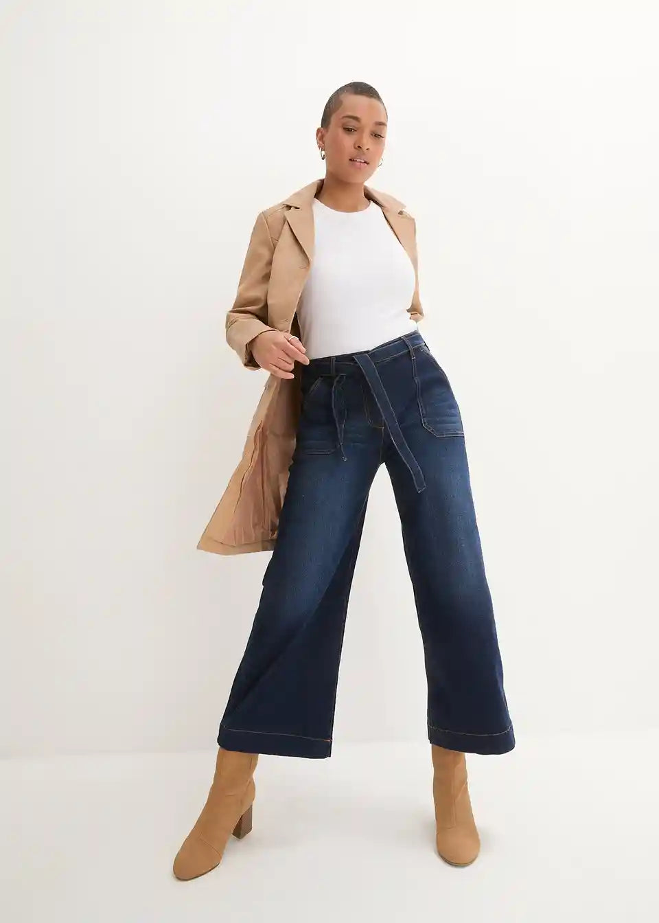 Kavbojke s širokimi hlačnicami in visokim udobnim pasom krajšega kroja