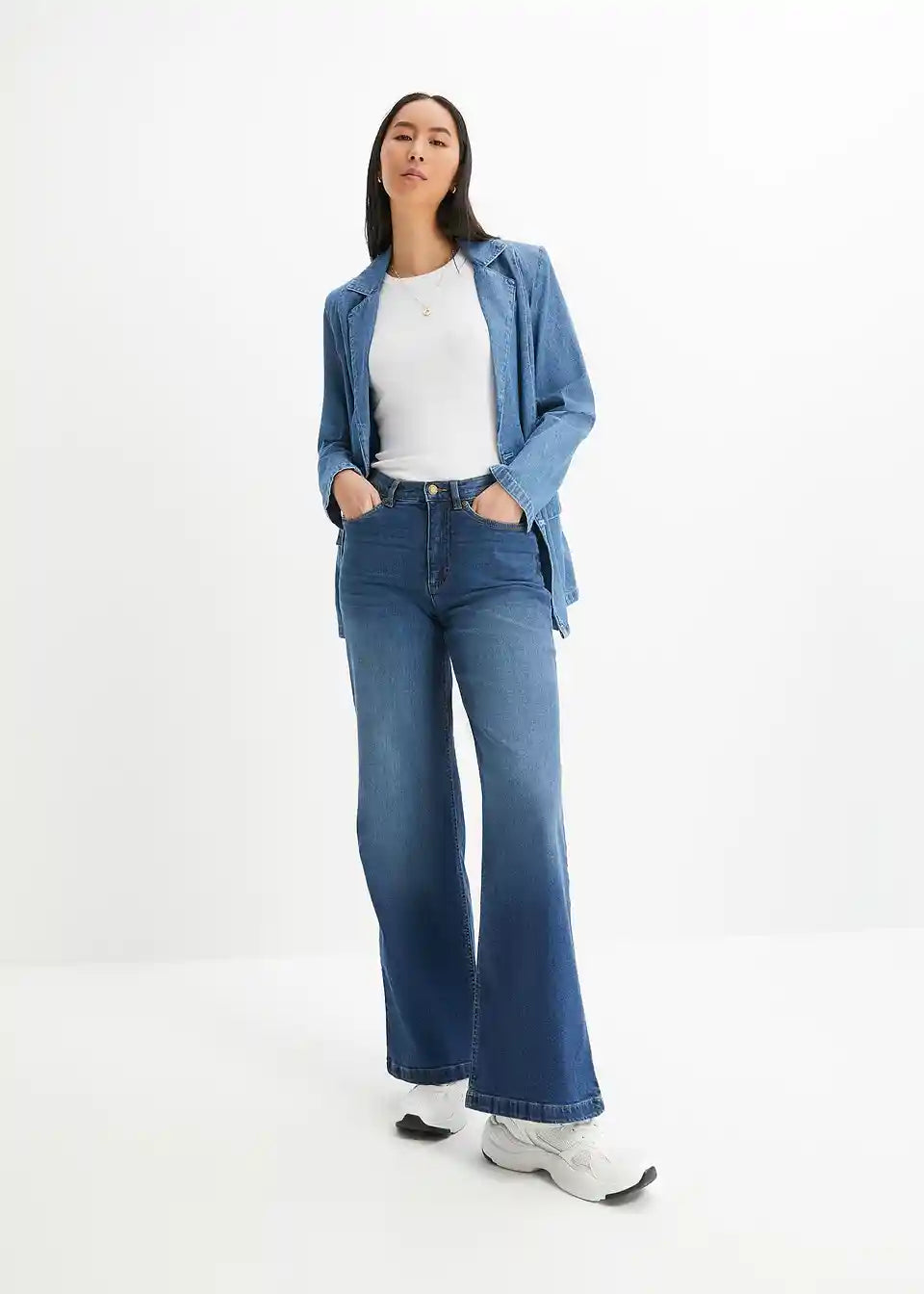 Kavbojke s širokimi hlačnicami, visokim pasom in ekološkim bombažem