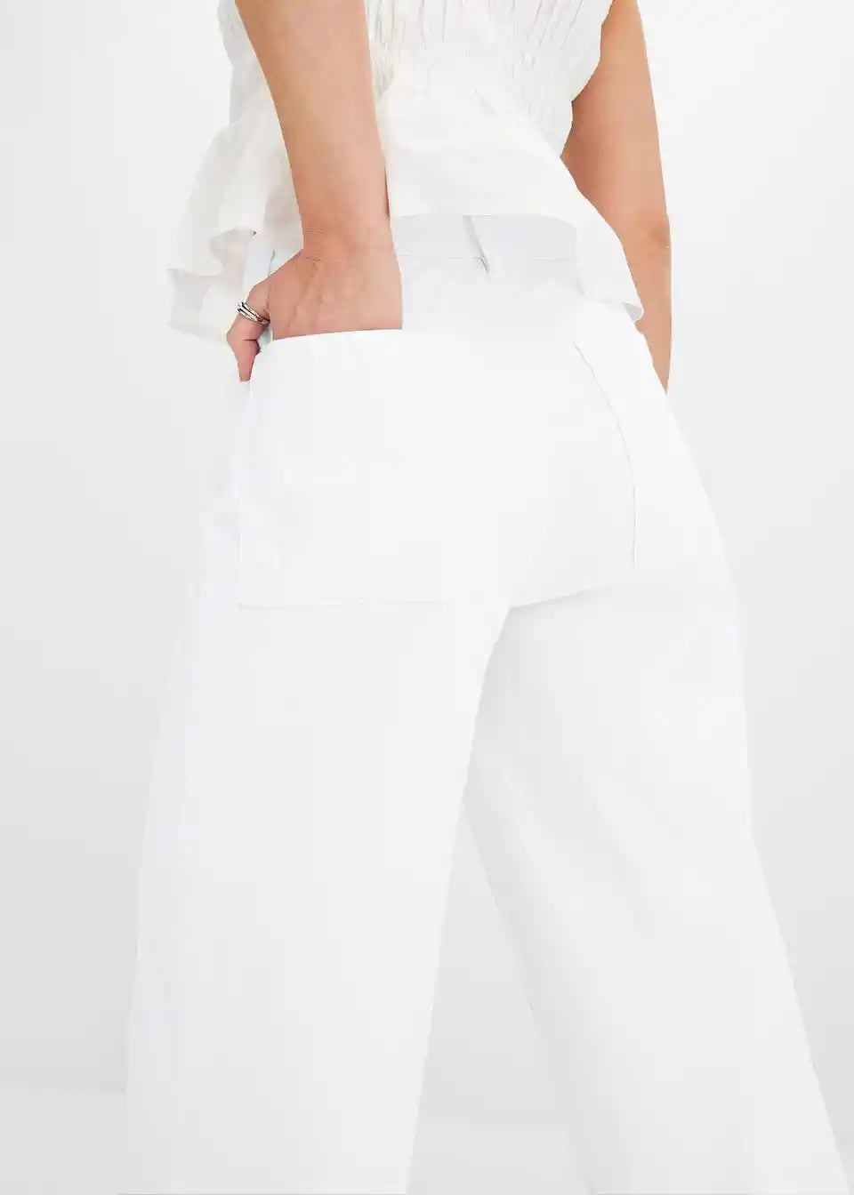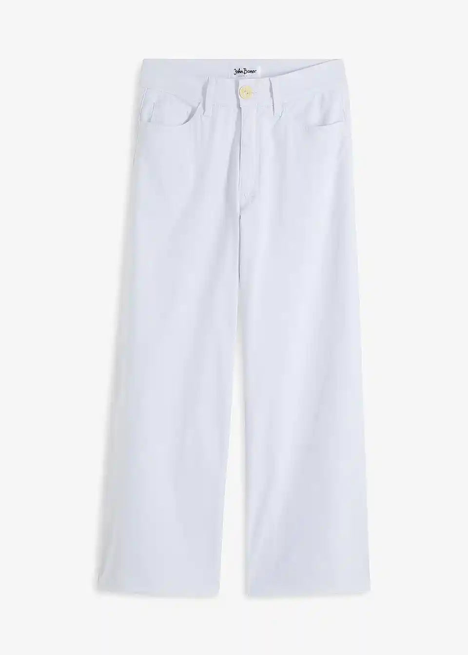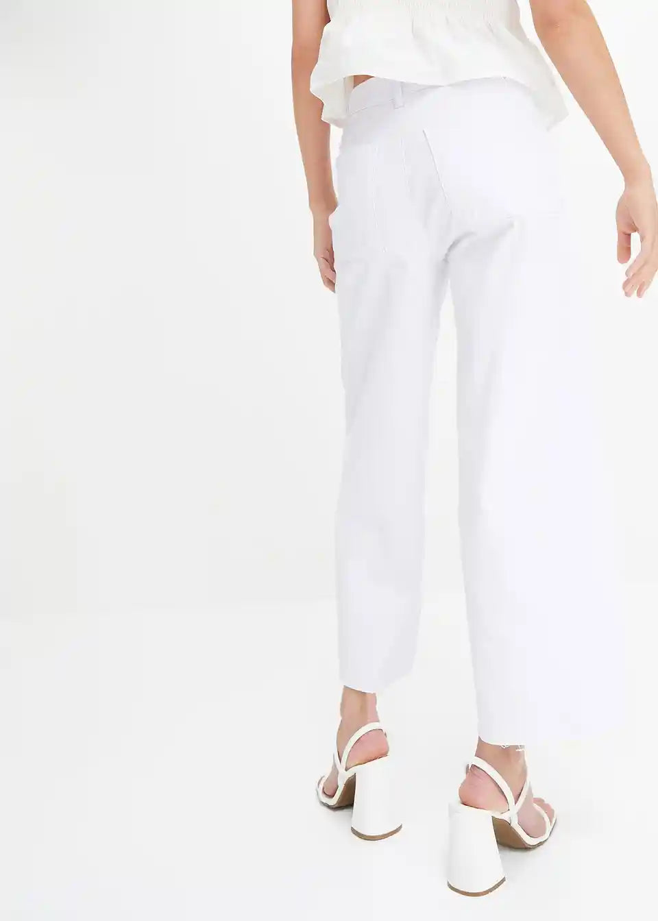 Kavbojke z visokim pasom in širokimi hlačnicami v krajšem kroju