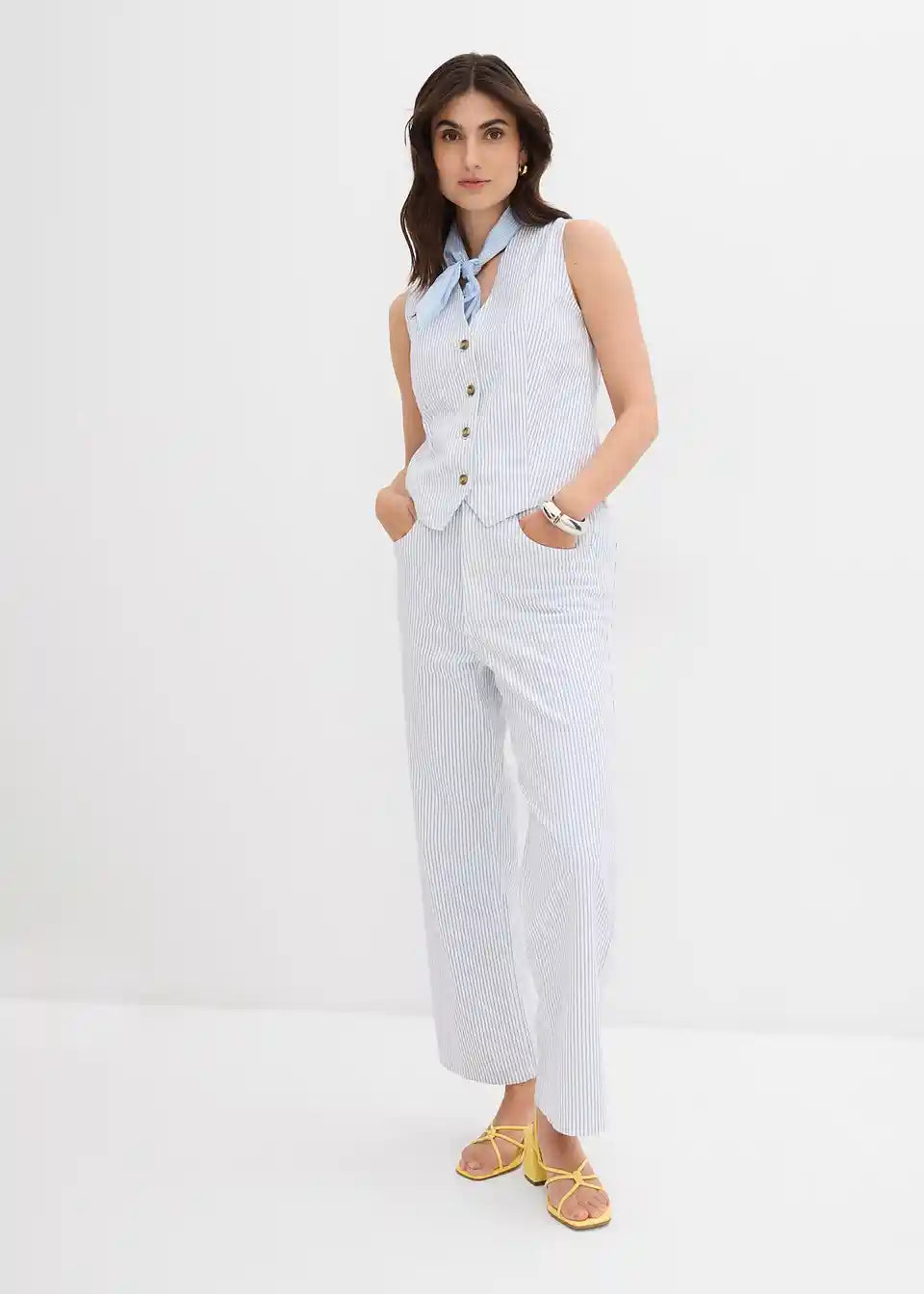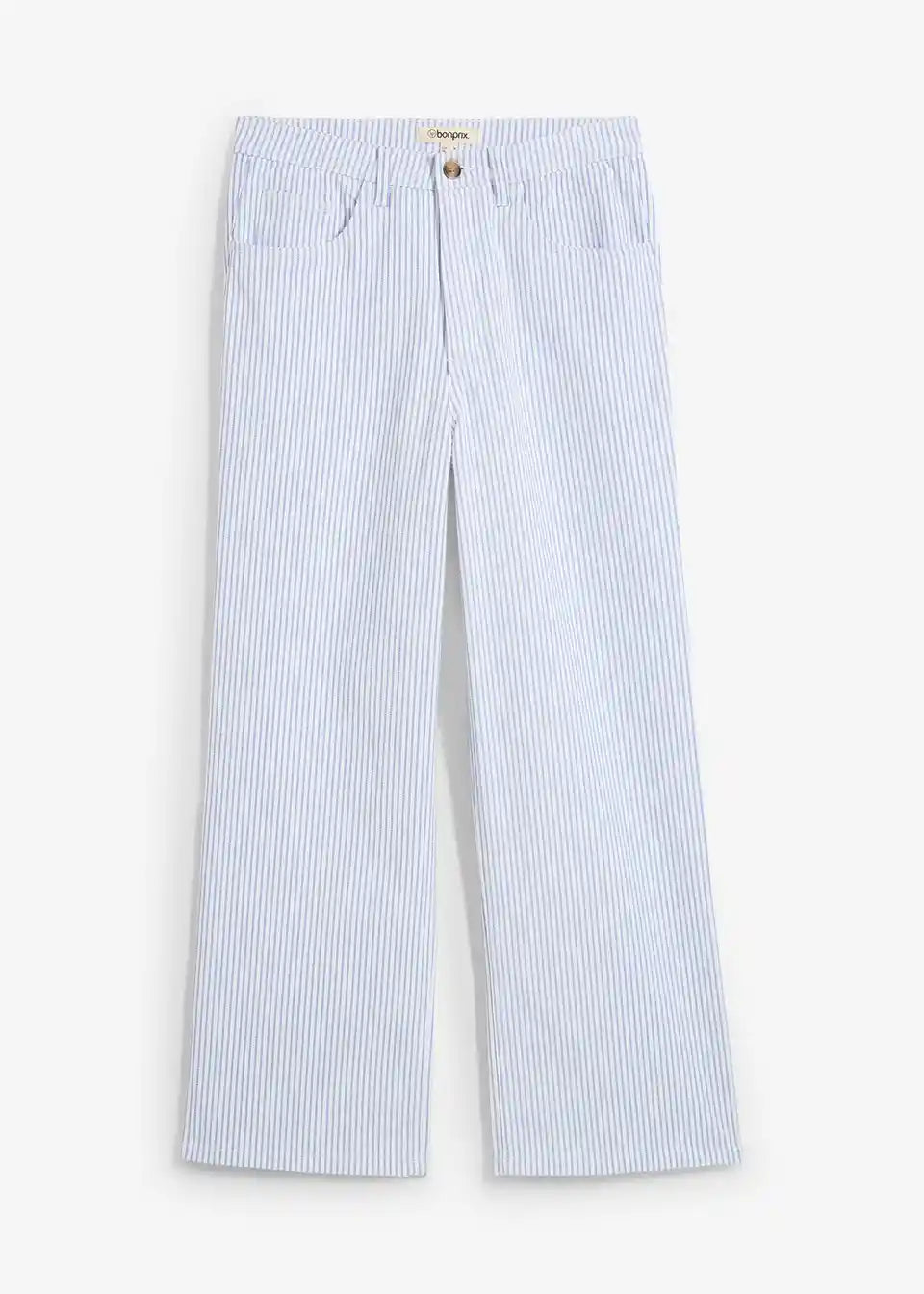 Kavbojke z visokim pasom in širokimi hlačnicami v krajšem kroju