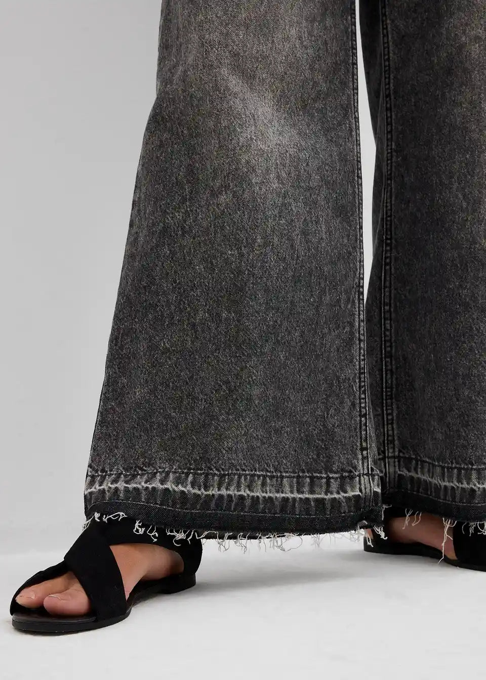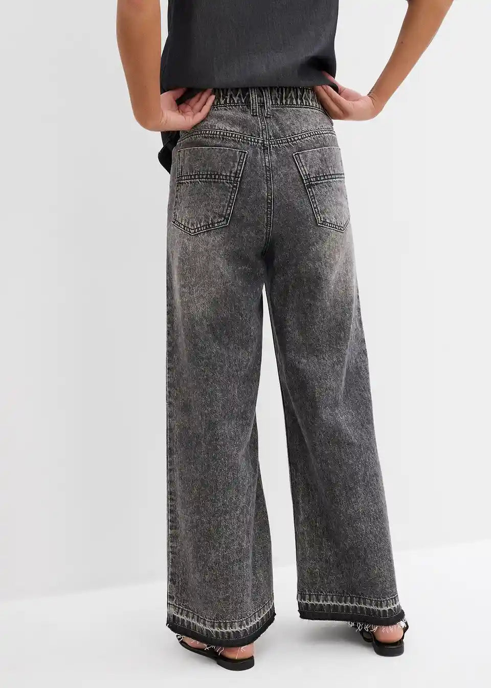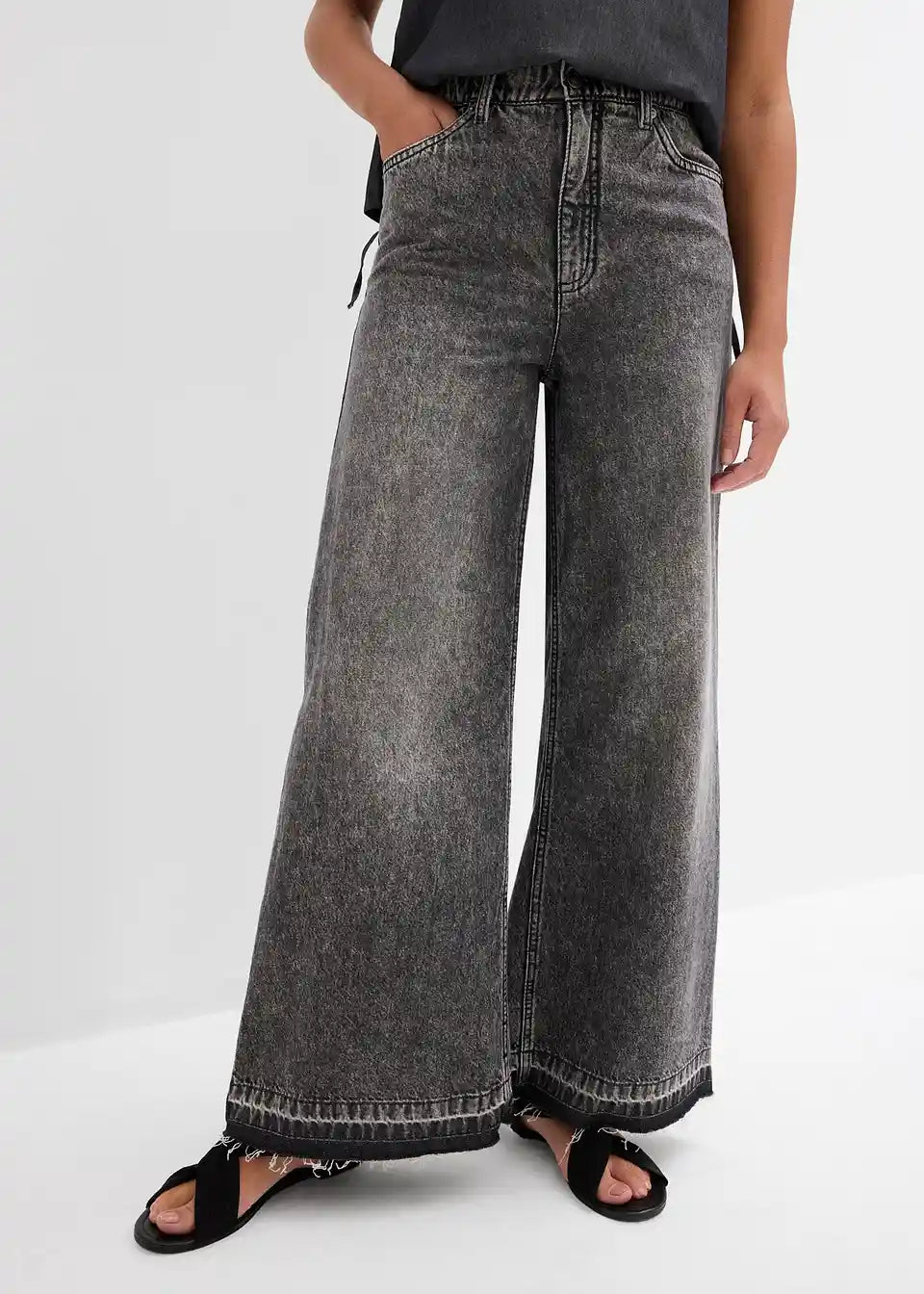 Kavbojke z visokim pasom in širokimi hlačnicami v krajšem kroju