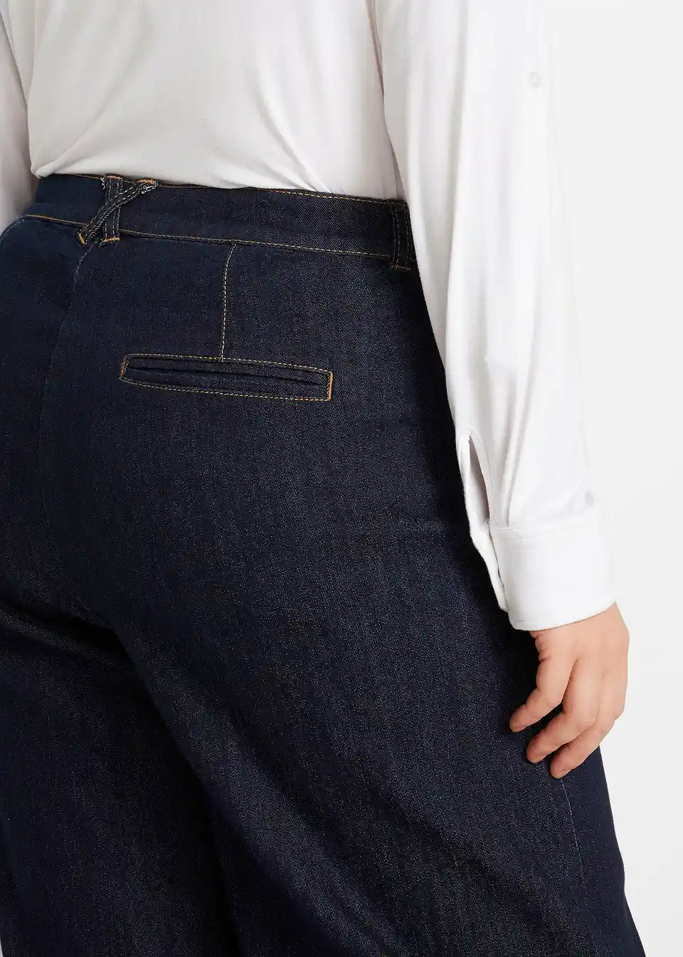 Kavbojke s širokimi hlačnicami in visokim udobnim pasom