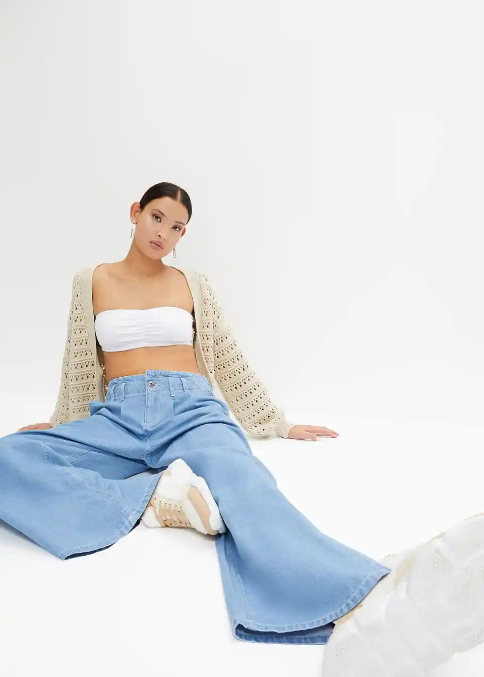 Kavbojke s širokimi hlačnicami in nizkim pasom iz rahlo raztegljivega materiala