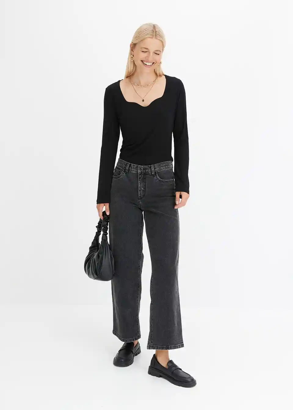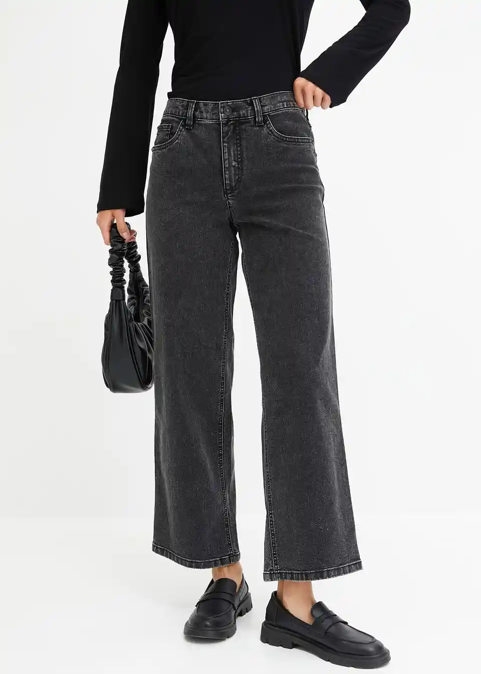 Kavbojke s širokimi hlačnicami in srednje visokim pasom