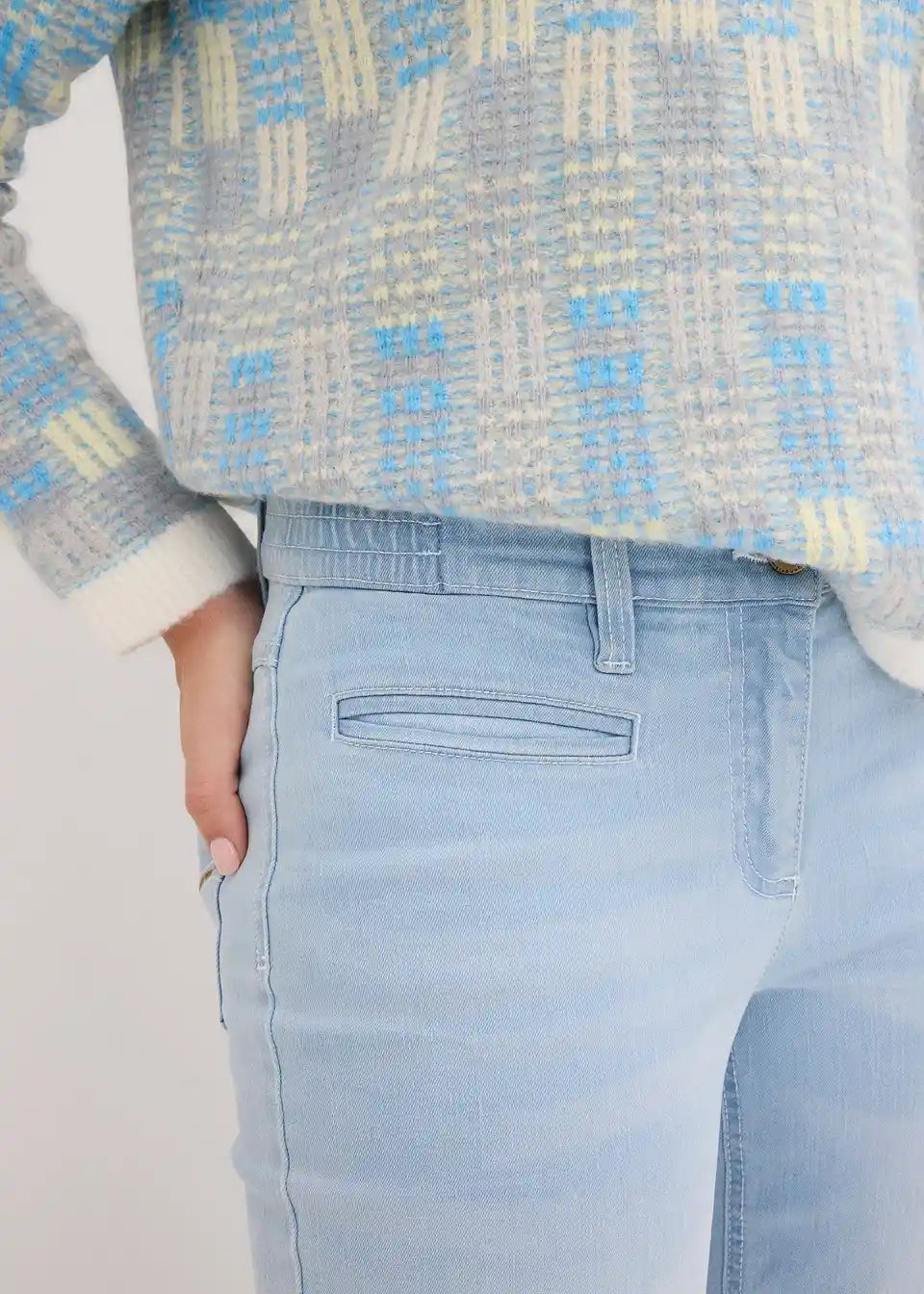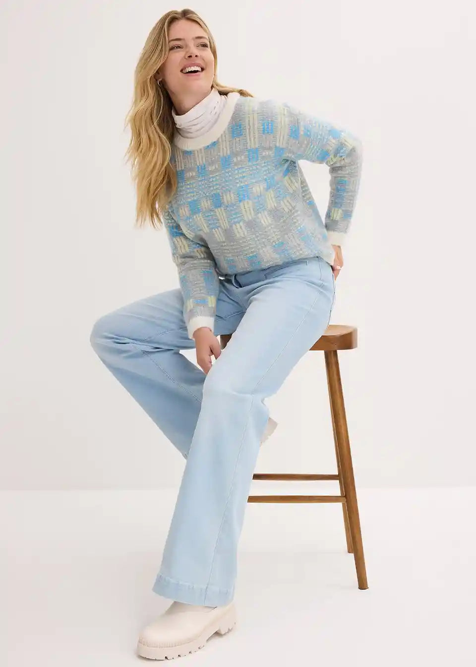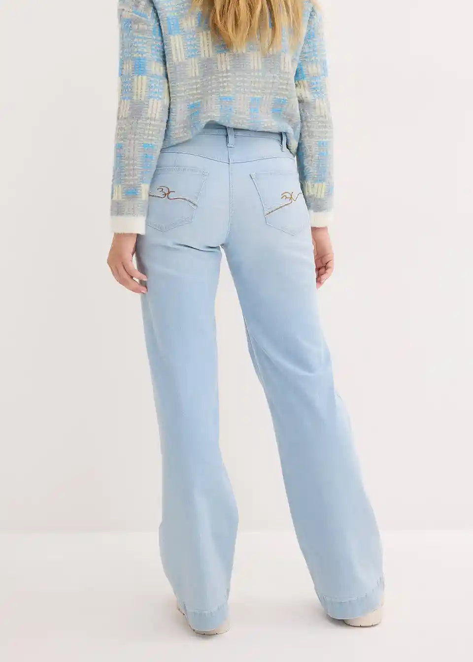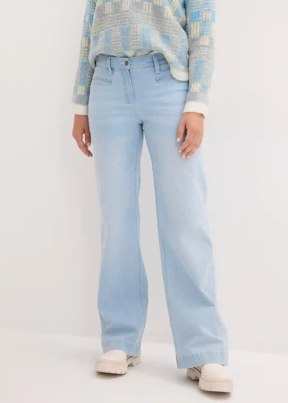 Kavbojke s širokimi hlačnicami in srednje visokim pasom