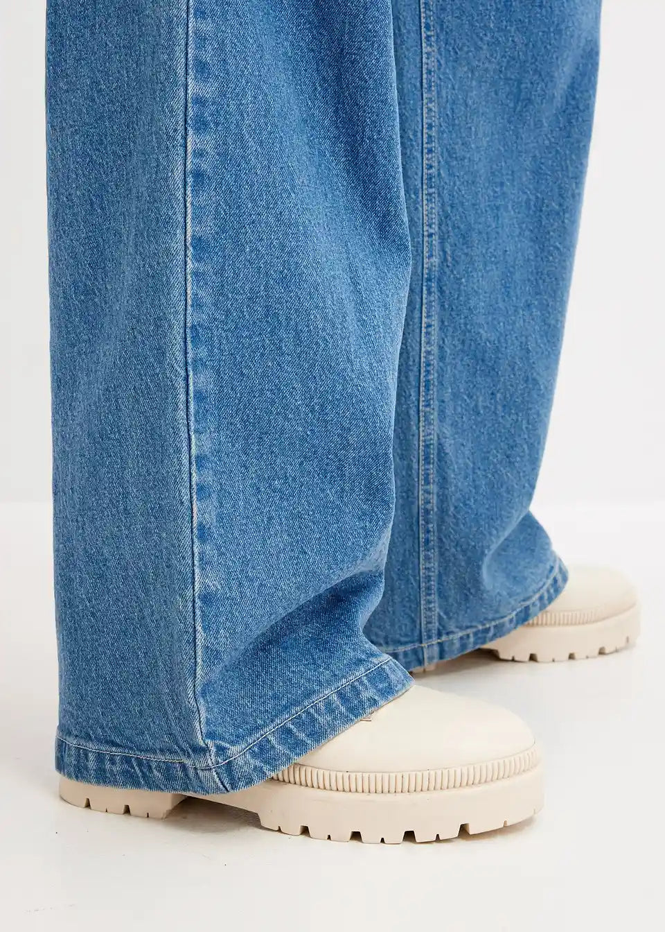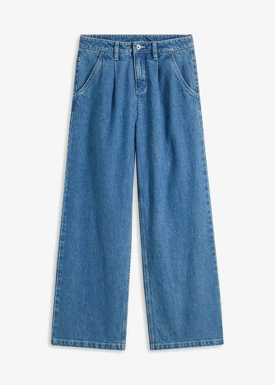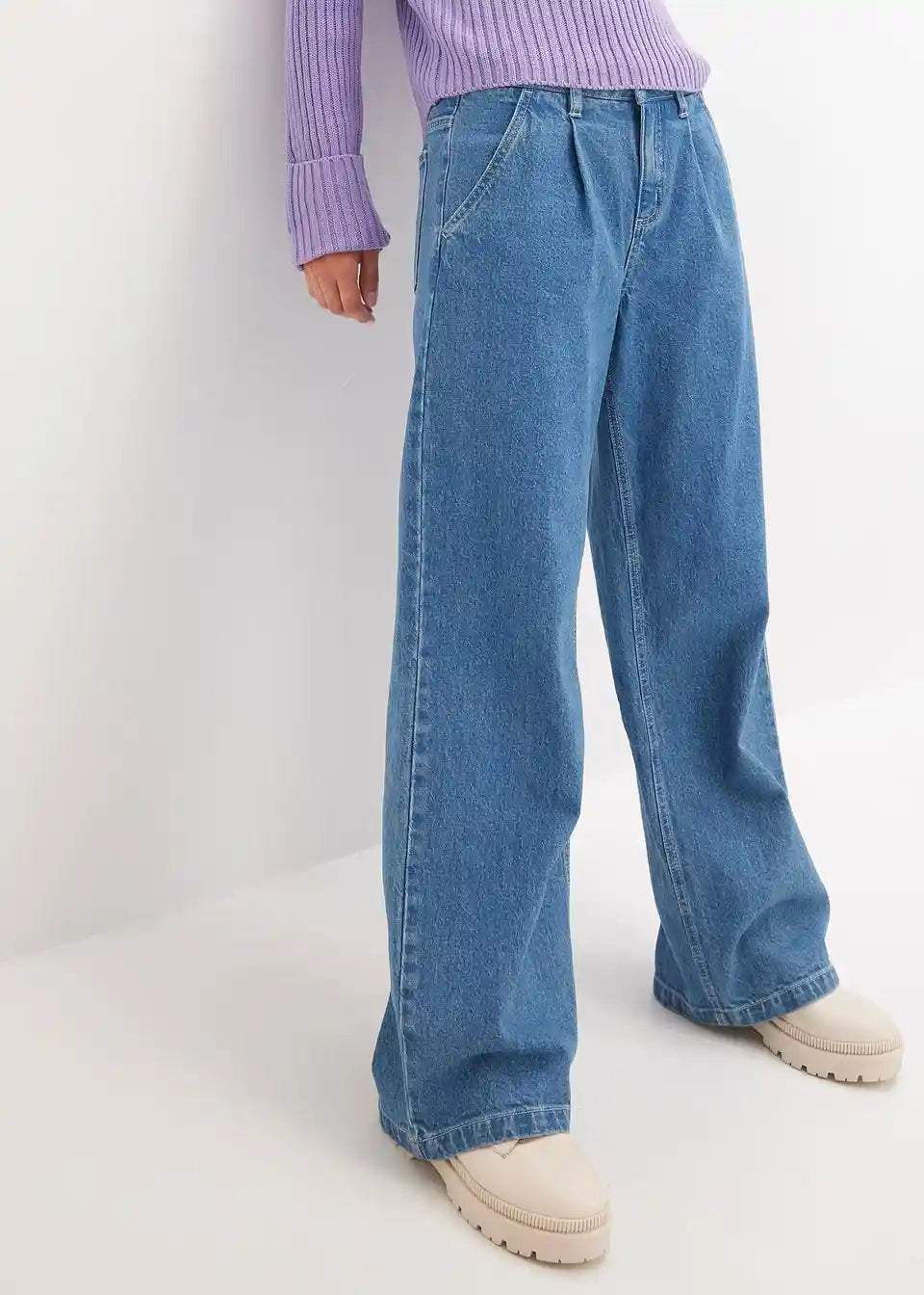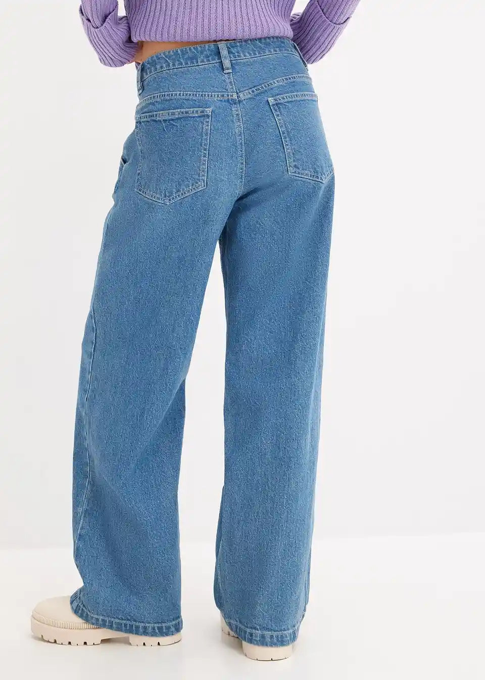 Kavbojke s širokimi hlačnicami in srednje visokim pasom