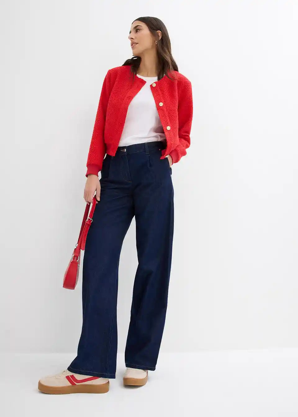 Kavbojke s širokimi hlačnicami in srednje visokim pasom