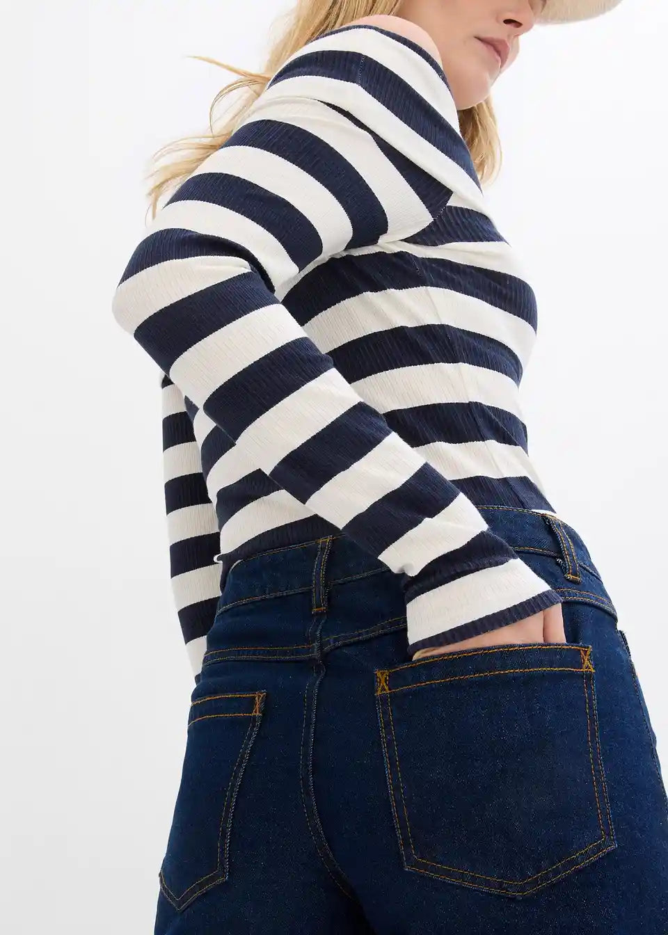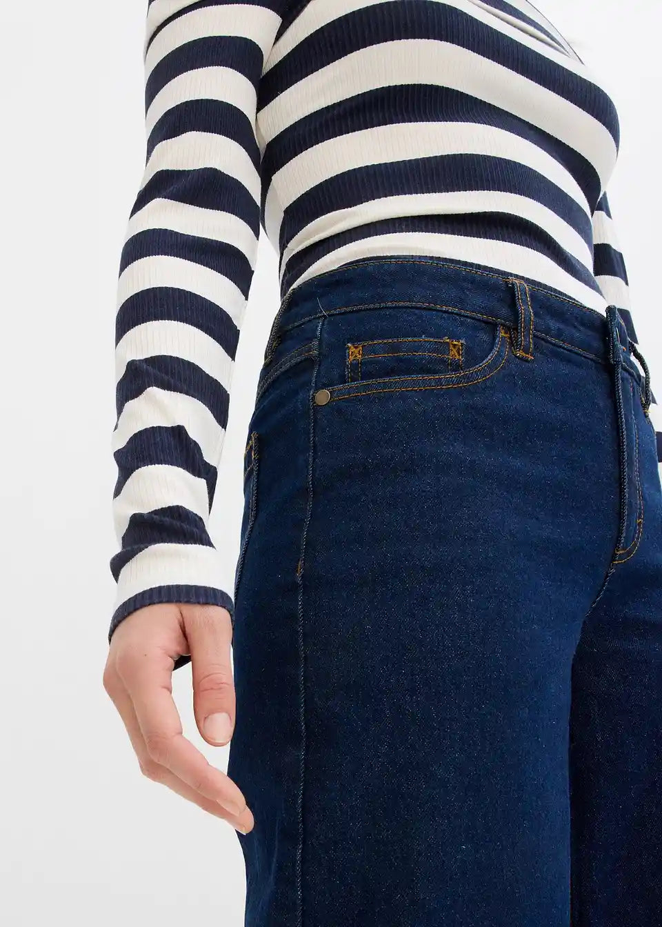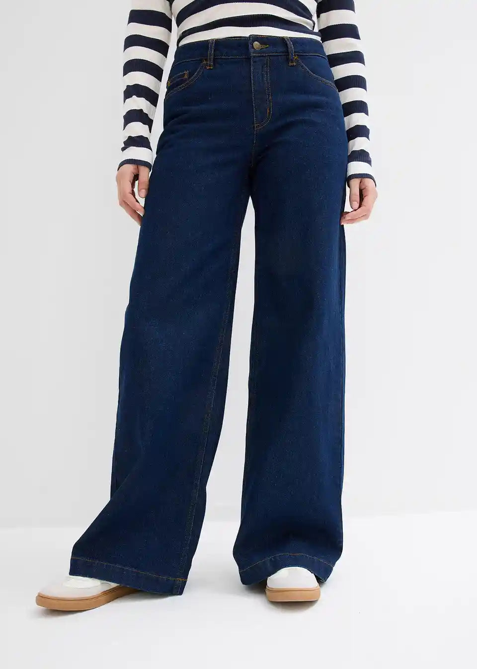 Kavbojke s širokimi hlačnicami in srednje visokim pasom v dolgem kroju
