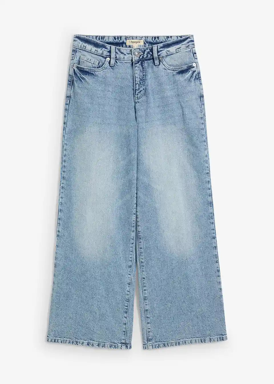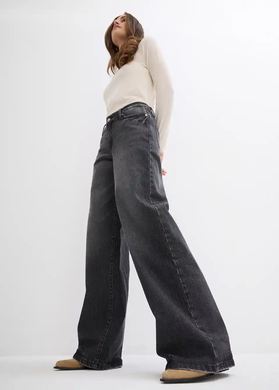 Kavbojke s širokimi hlačnicami in srednje visokim pasom iz rahlo raztegljivega materiala klasične dolžine