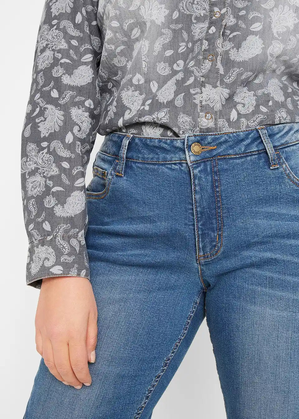 Kavbojke s širokimi hlačnicami s srednje visokim pasom in stretch materialom