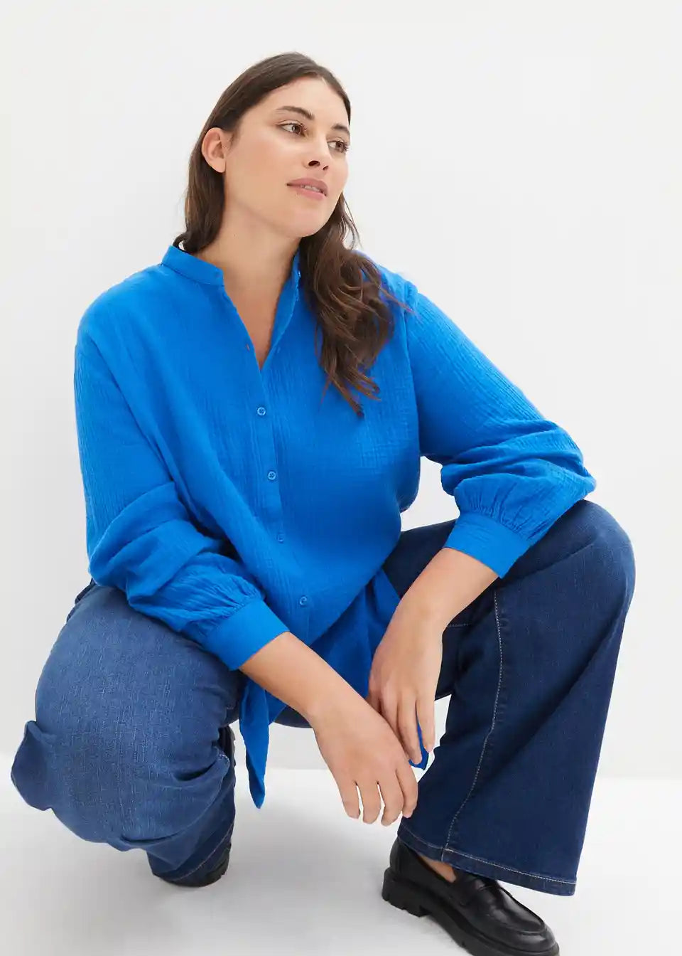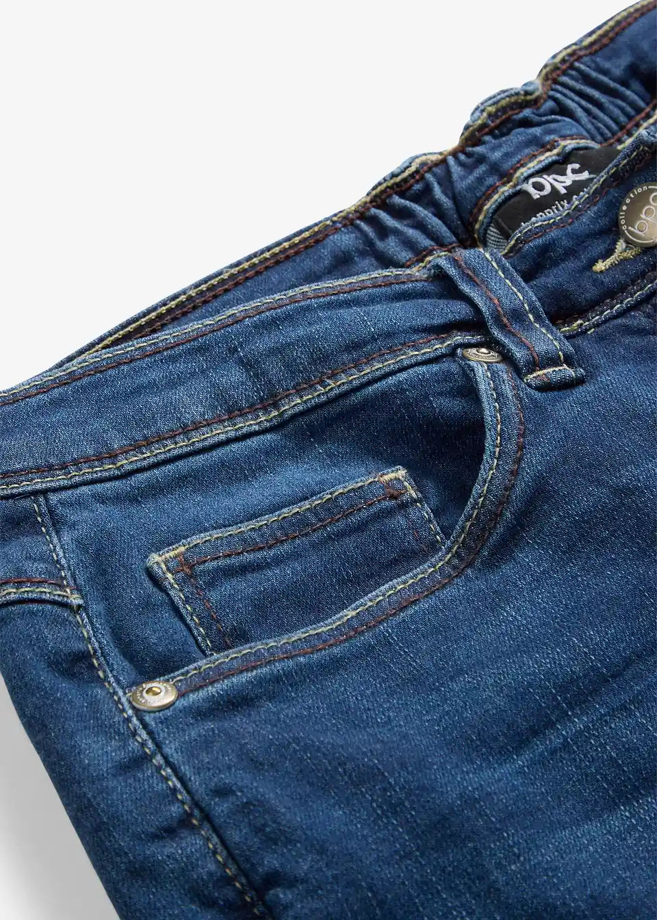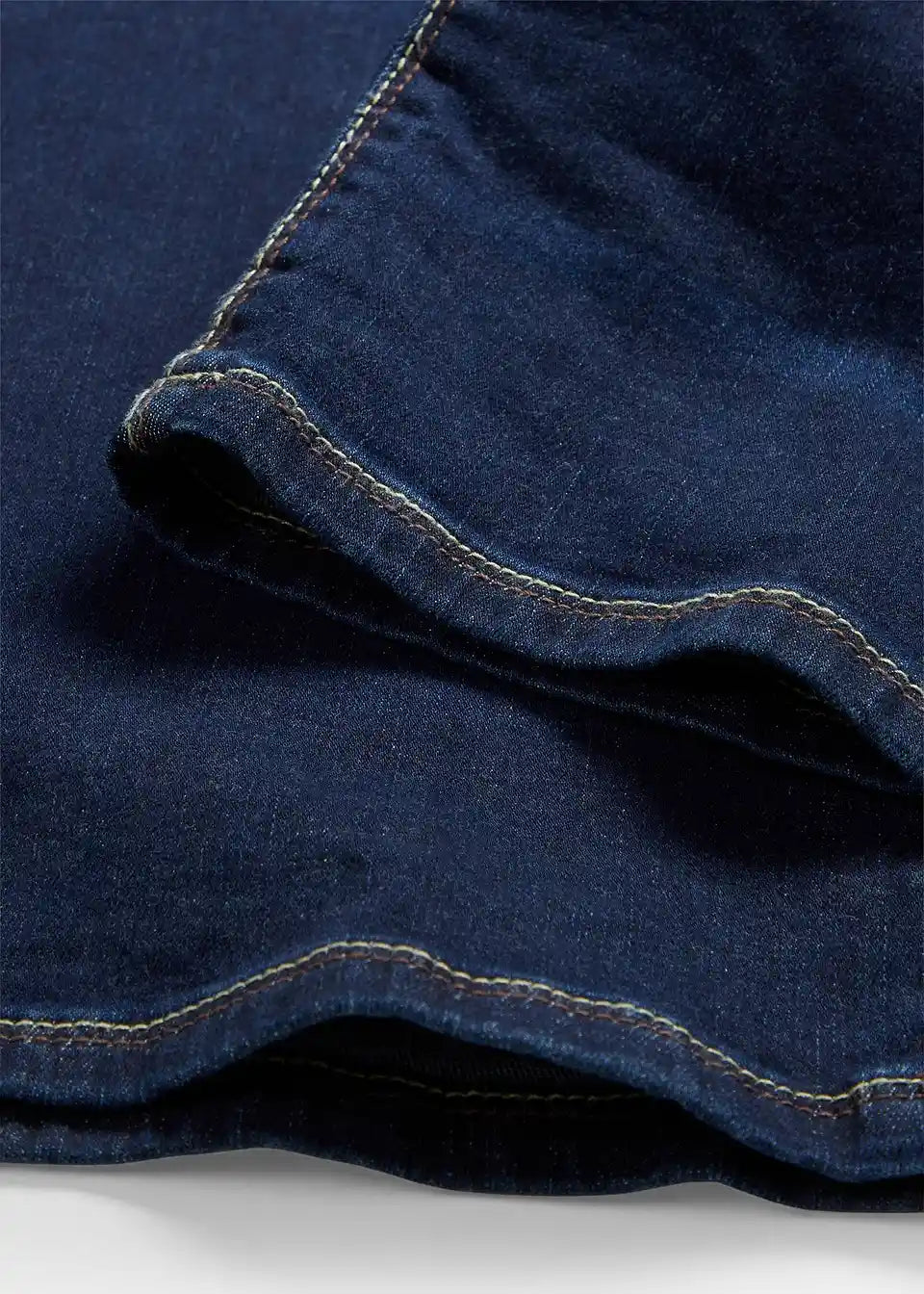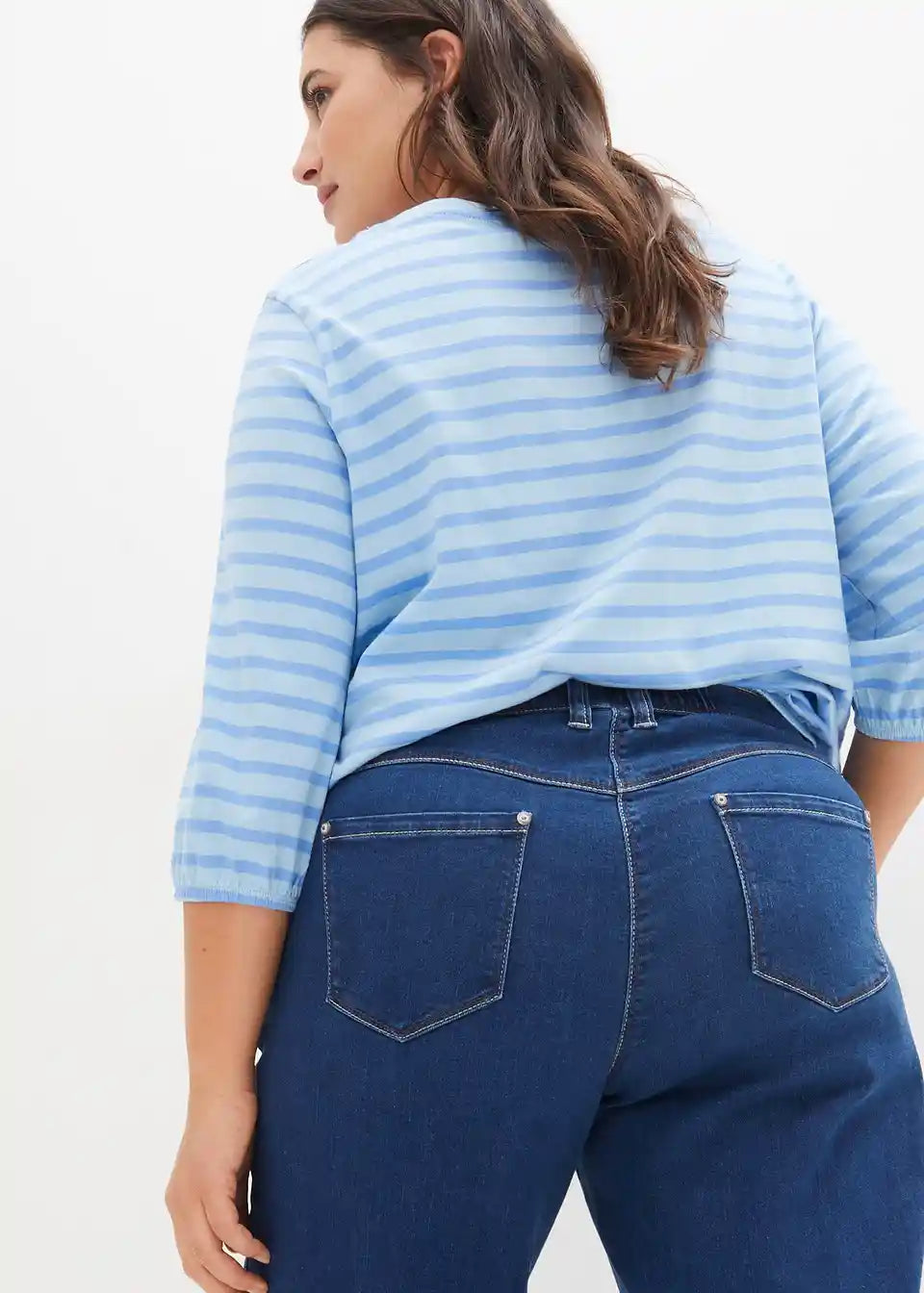 Jeans z visokim udobjem nošenja zaradi udobnega pasu in izjemno širokih hlačnic iz materiala z raztegljivostjo