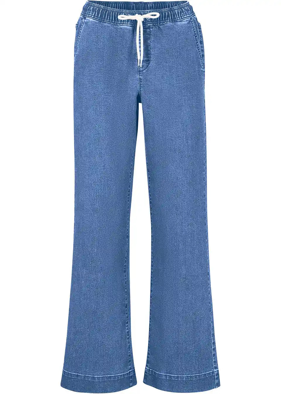 Kavbojke s širokimi hlačnicami s srednje visokim pasom in stretch materialom