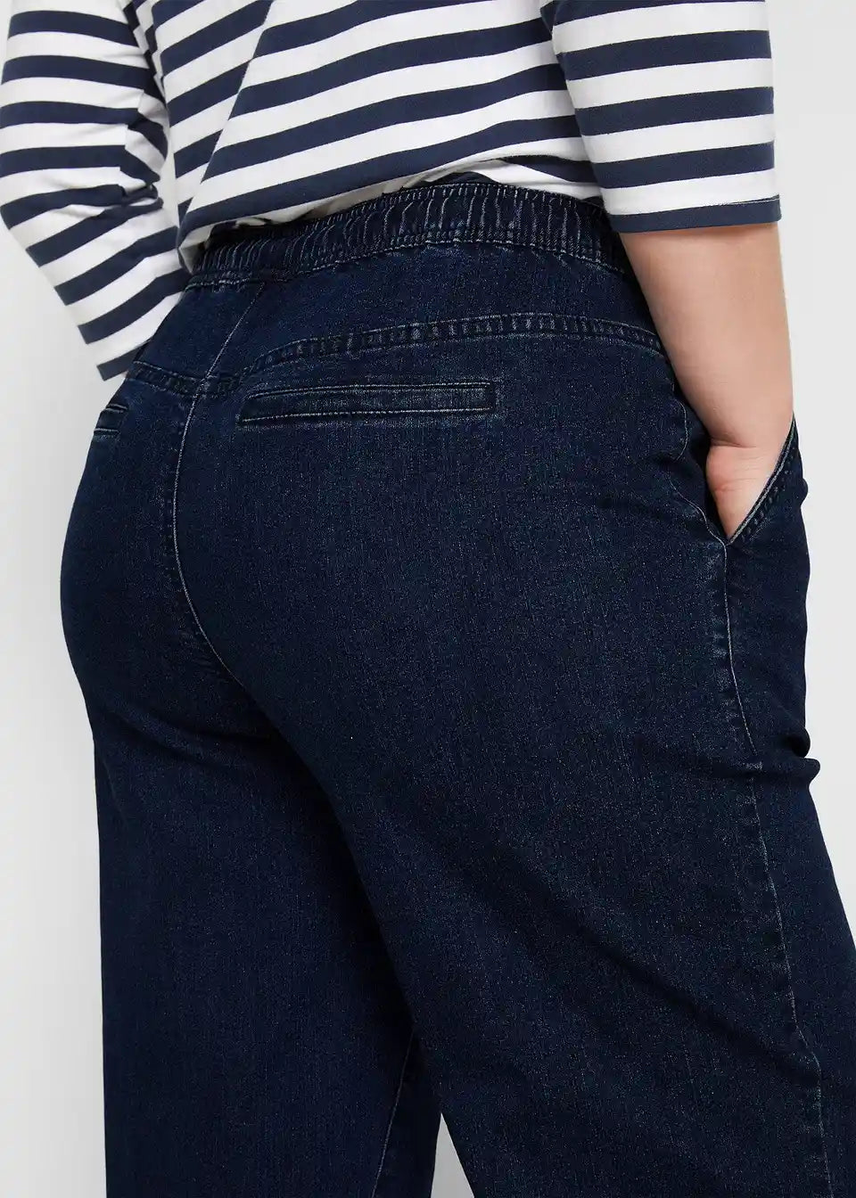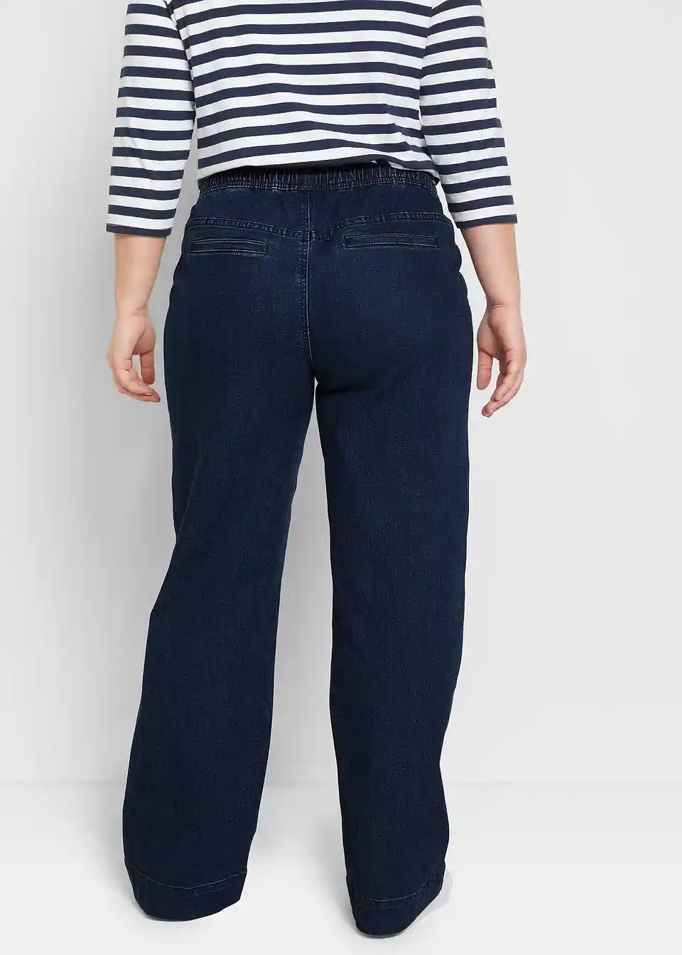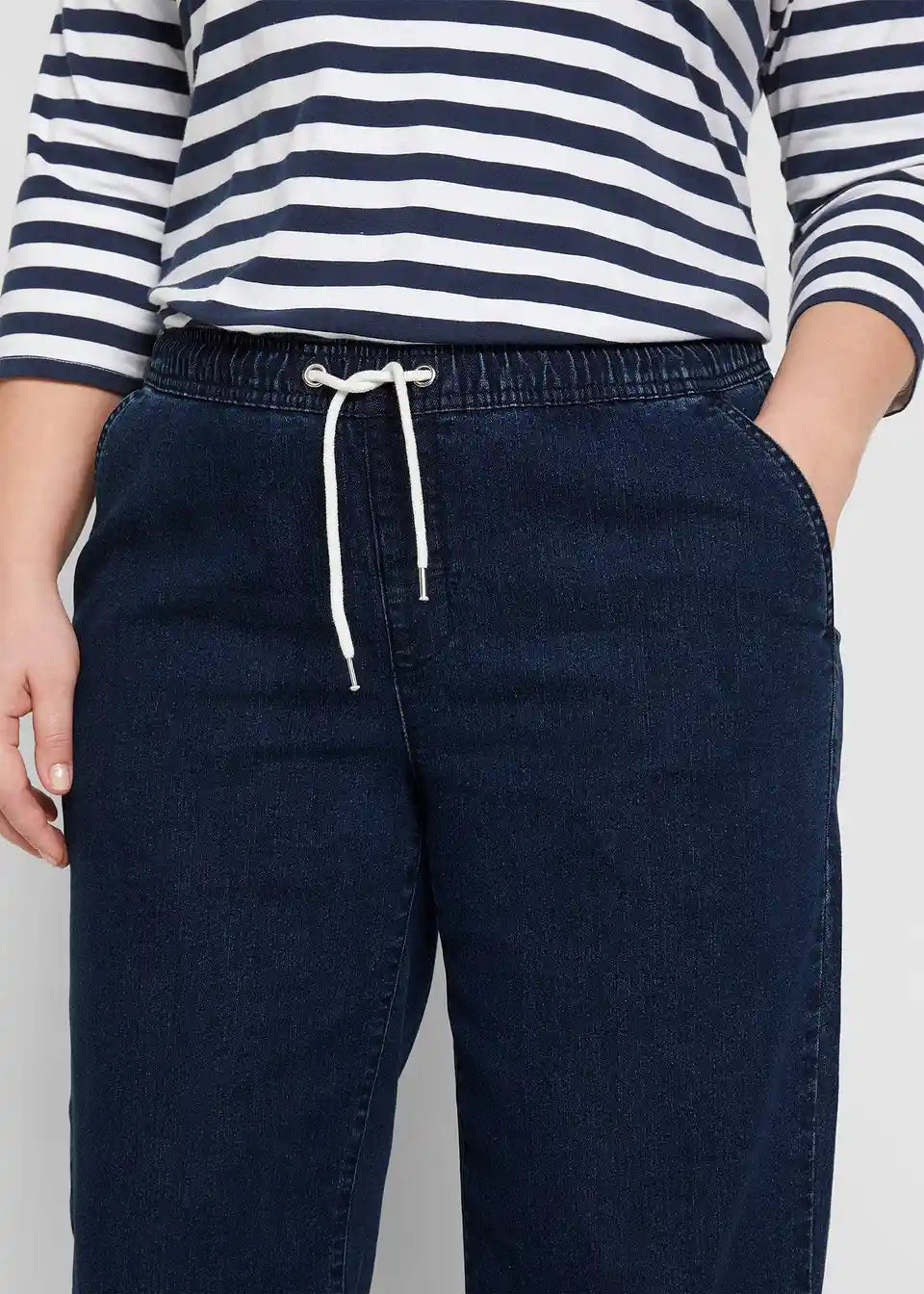 Široke jeans hlače z raztegljivostjo in s pasom za zavezovanje