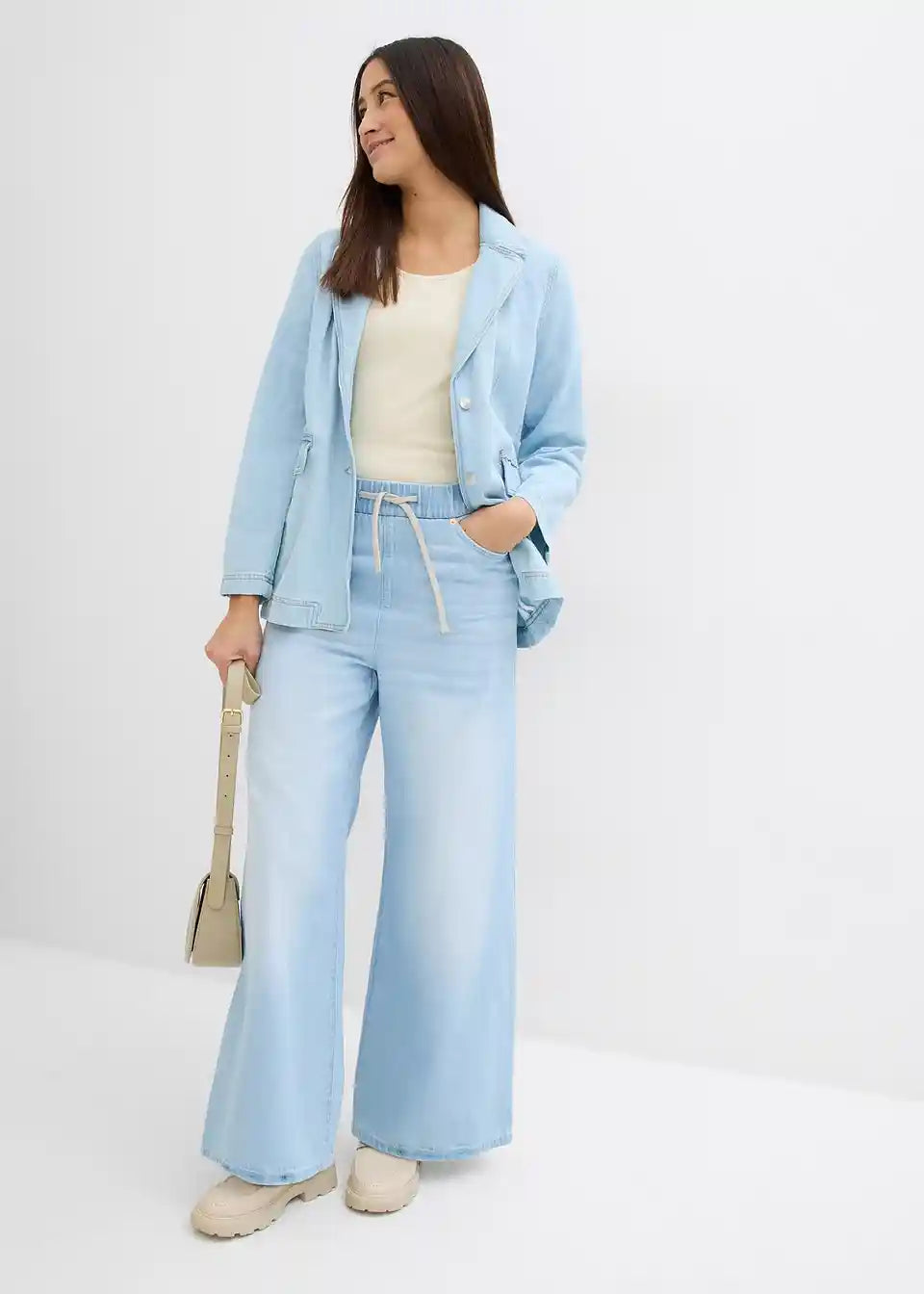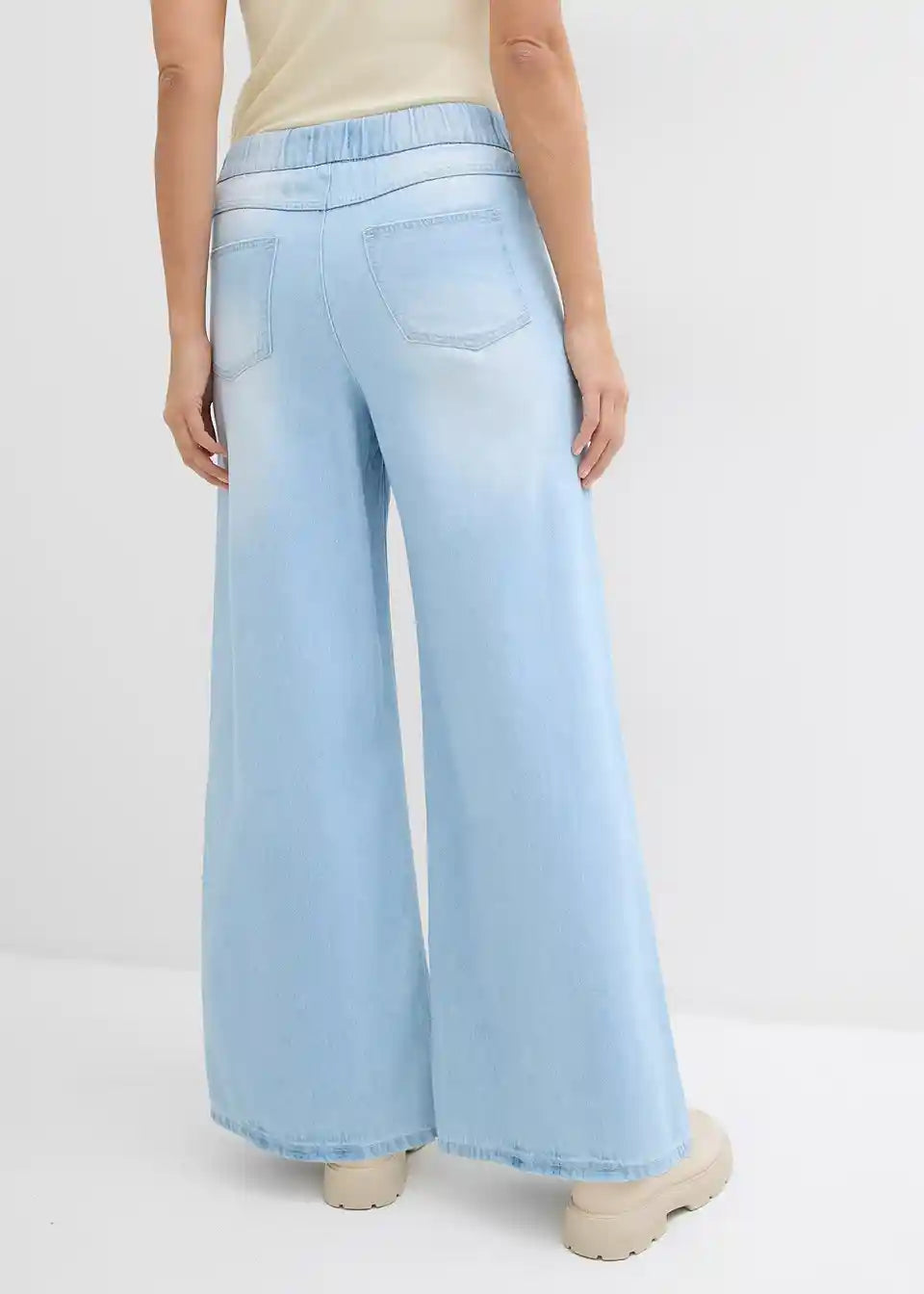 Kavbojke s širokimi hlačnicami in srednje visokim udobnim pasom