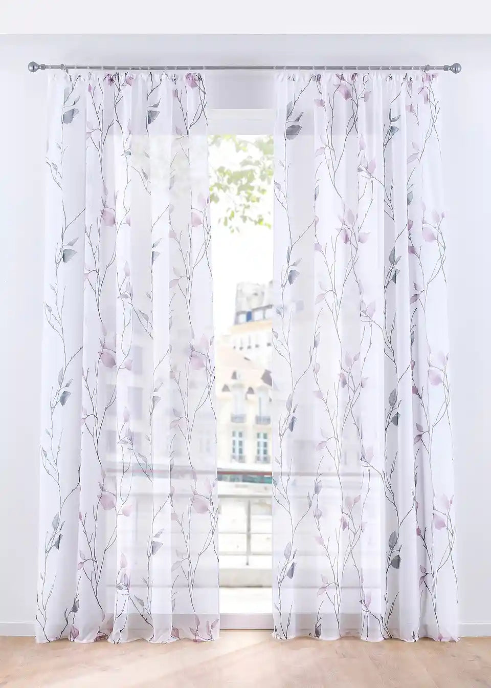 Kot akvarel deluje cvetlični potisk na naši prosojni zavesi. Nežne barve in prosojnost zavese naredijo prostor svetel in prijazen. Narejena je iz enostavnega za vzdrževanje vojle blaga.