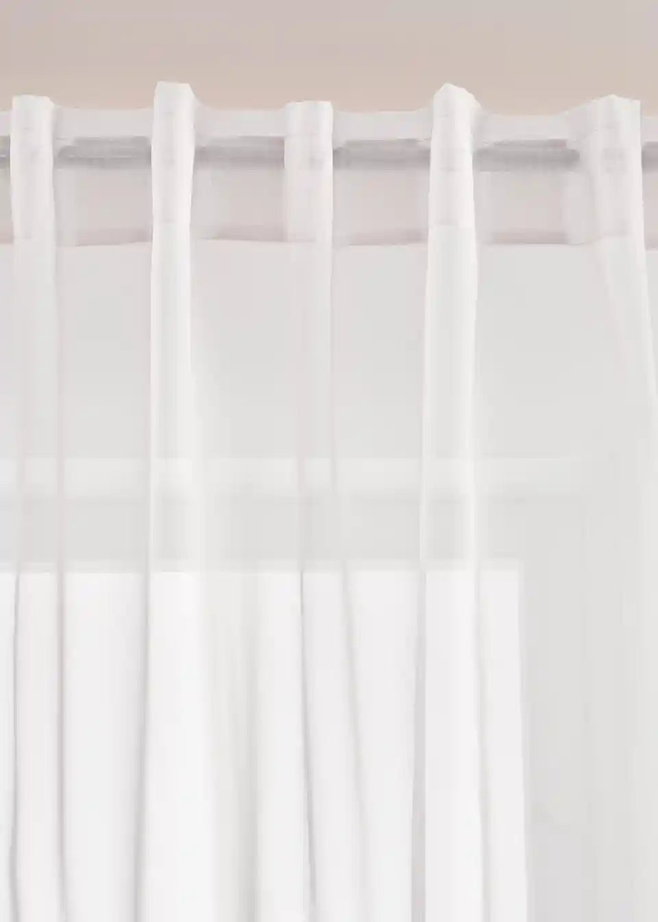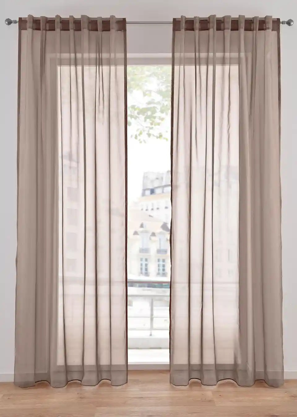 Ta prosojna zavesa v hipu in na diskreten način polepša vsak okenski del. Fina tkanina se odlikuje po zračnem in lahkotnem padcu. Poleg tega je material enostaven za nego in primeren za strojno pranje. Ne glede na to, ali je spuščena ali z dekorativnim trakom nabrana, ta zavesa vsakemu bivalnemu prostoru podari zračno, lahkotno vzdušje.