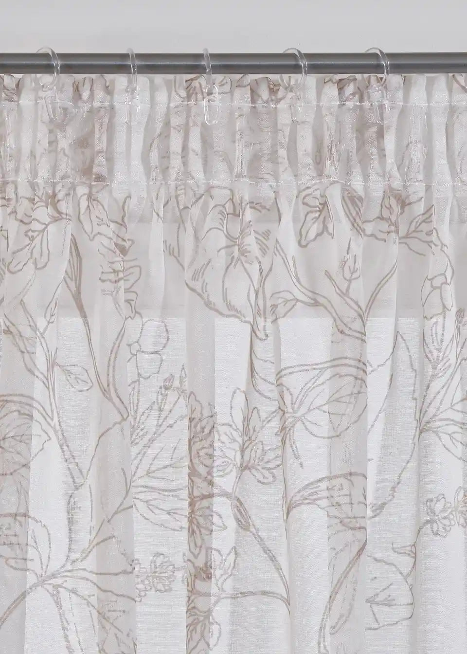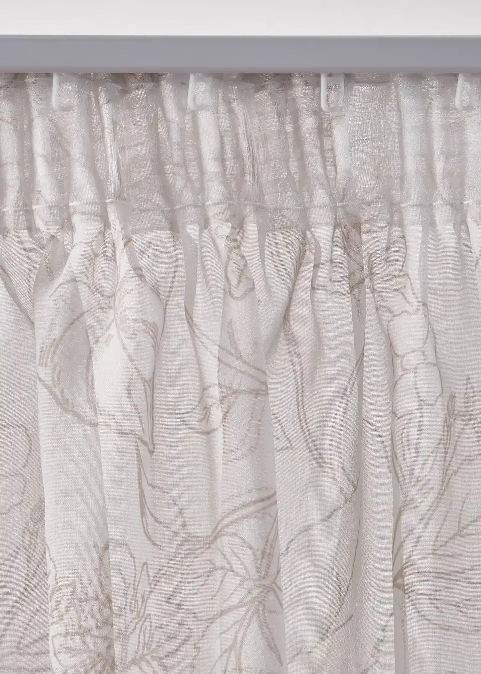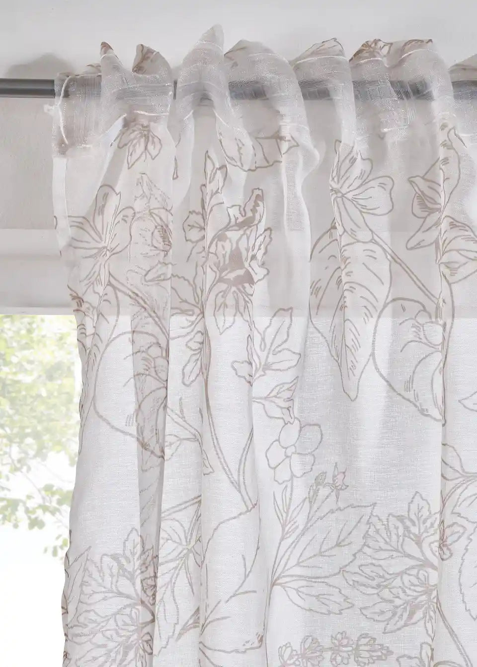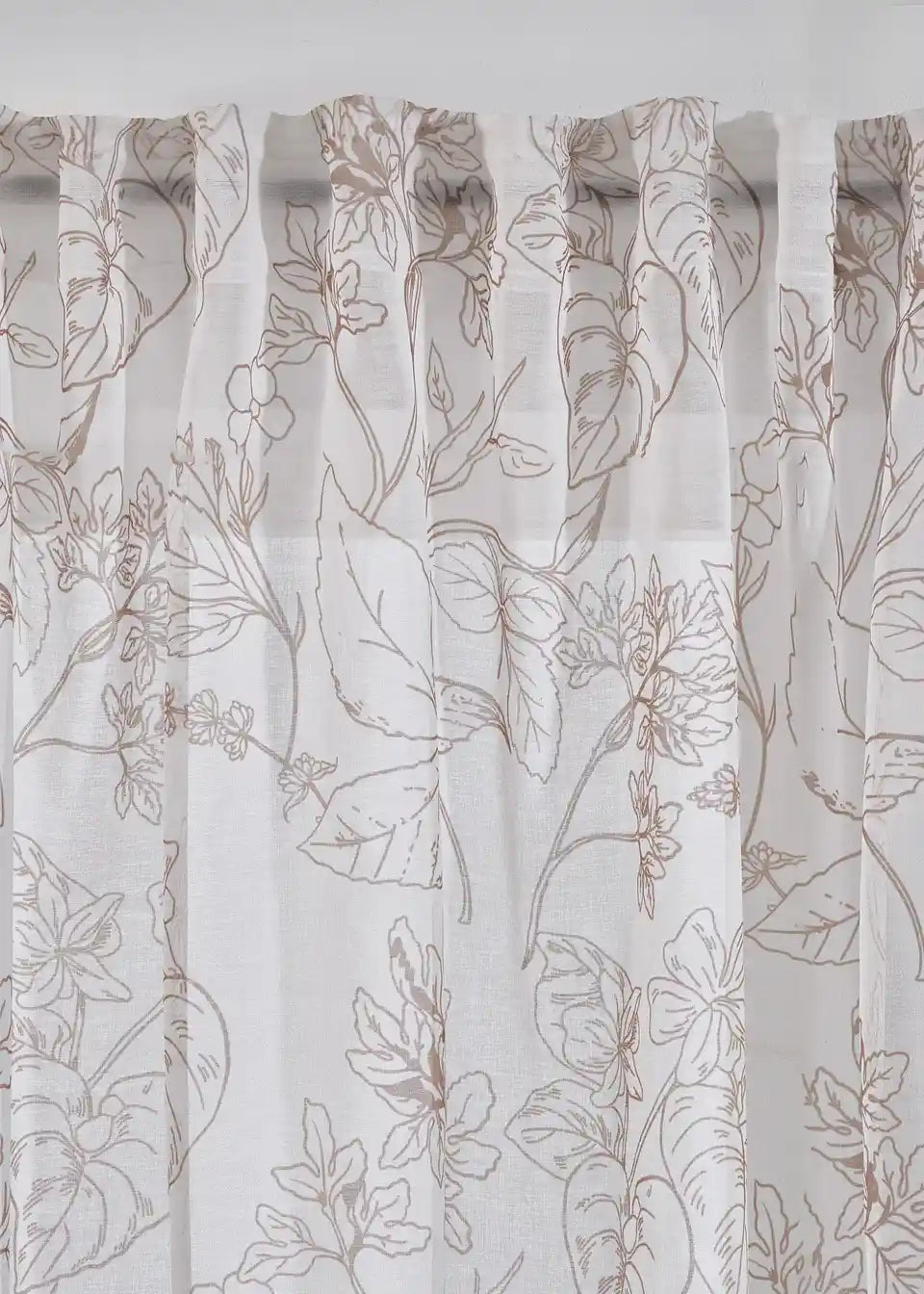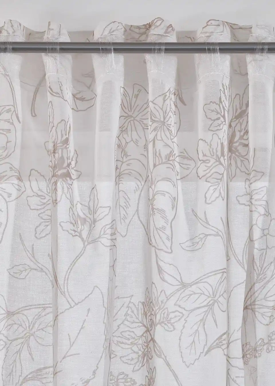 Zavesa ima lepo strukturo in nežen tisk v naravni barvi. Nežno polepša vsak prostor.