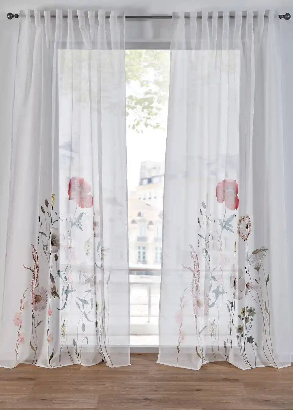 Zavesa z recikliranim poliestrom in cvetličnim potiskom (1 kos)