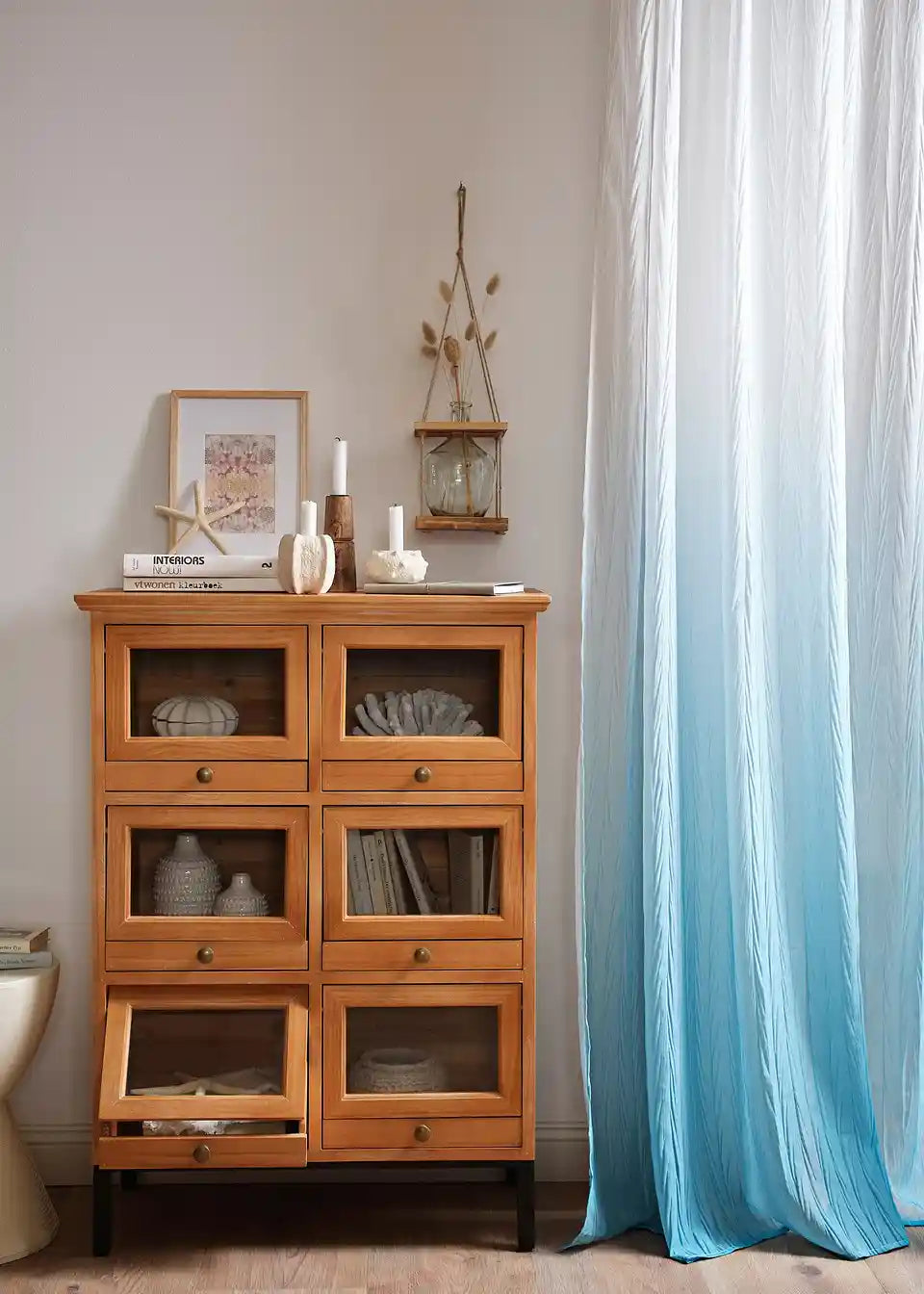 Pripravljena zavesa z lepim barvnim prelivom in zmečkanim videzom