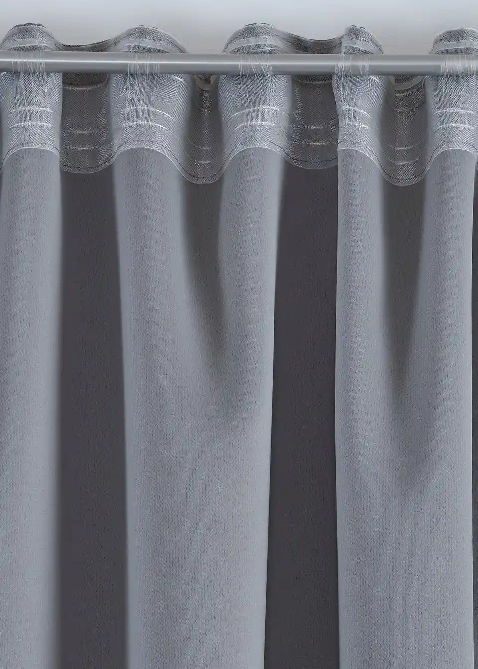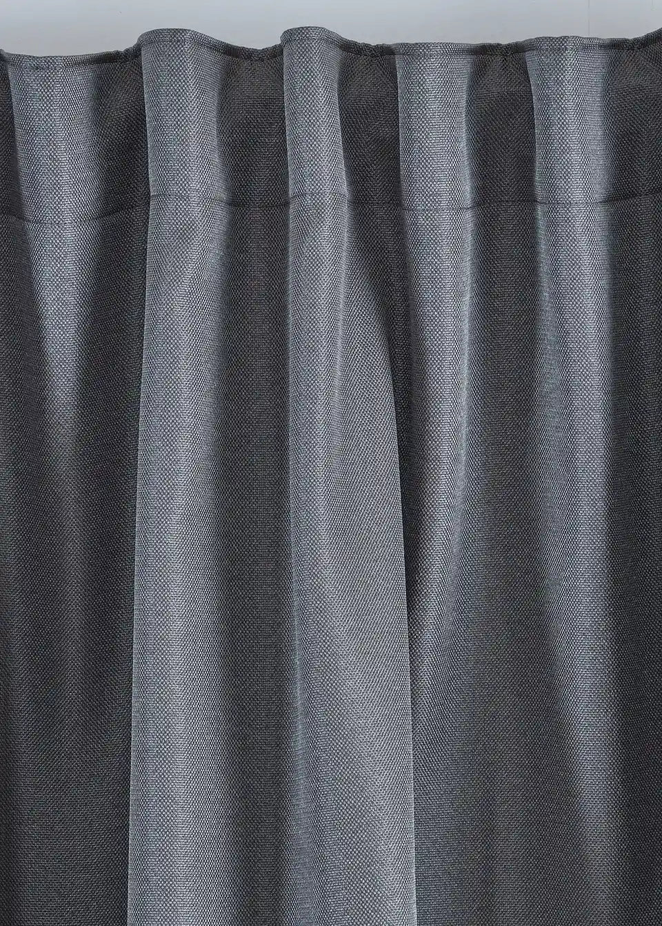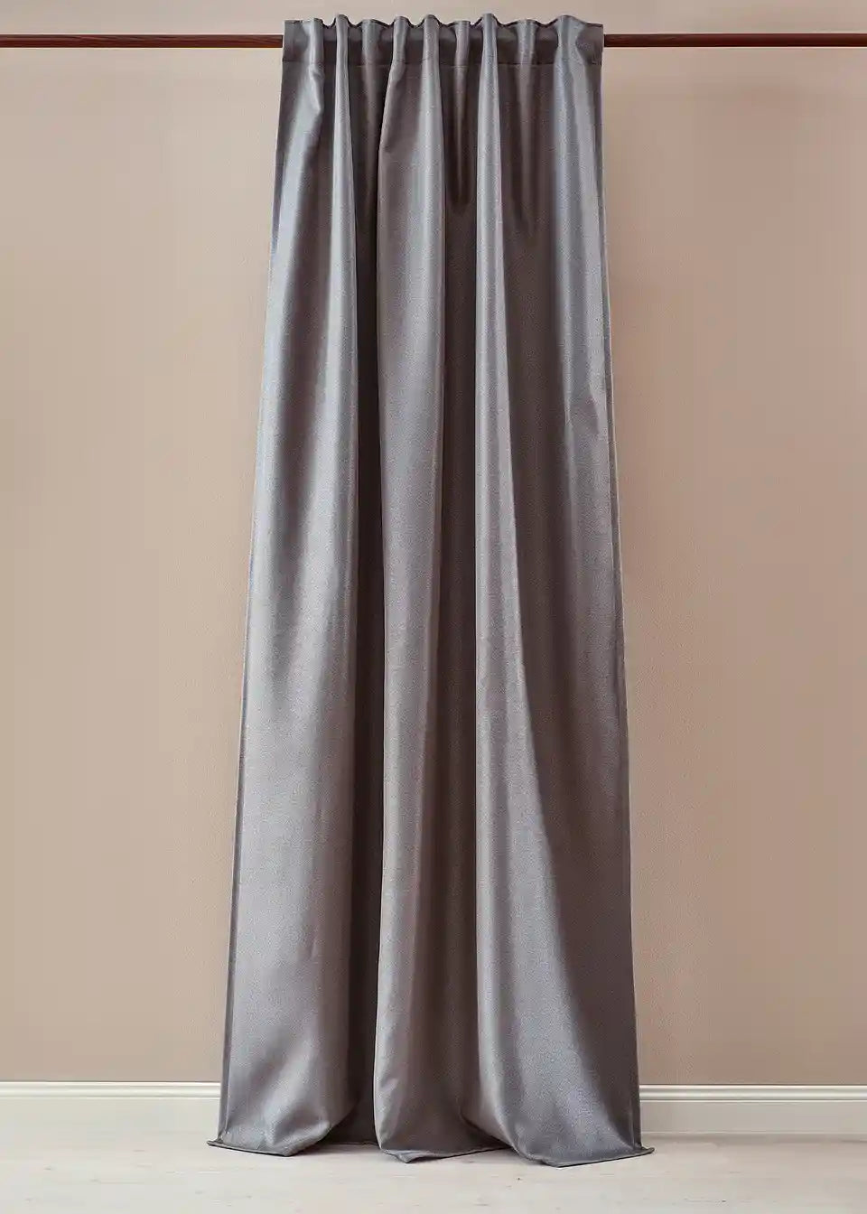Ta zavesa je zelo moderna, saj sta tako barva kot tudi struktura tkanine v skladu z najnovejšimi trendi. Rahla bleščečnost ji daje prefinjen videz.